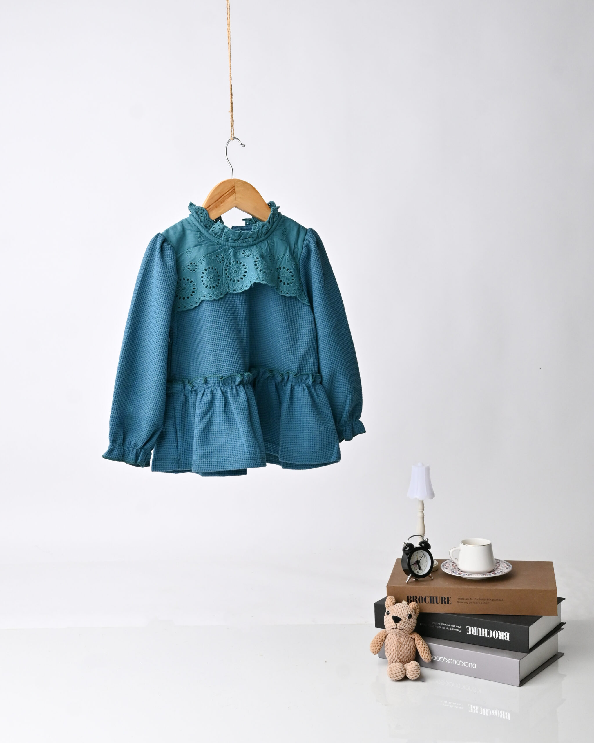 بلوزة أطفال بتصميم أنيق وبسيط، تتميز بتفاصيل تطريز ناعمة عند الصدر وأكمام طويلة مريحة. مصنوعة من قماش خفيف ولطيف على البشرة، مناسبة للاستخدام اليومي وتمنح الطفلة إطلالة مرتبة وهادئة تجمع بين الراحة والجمال.