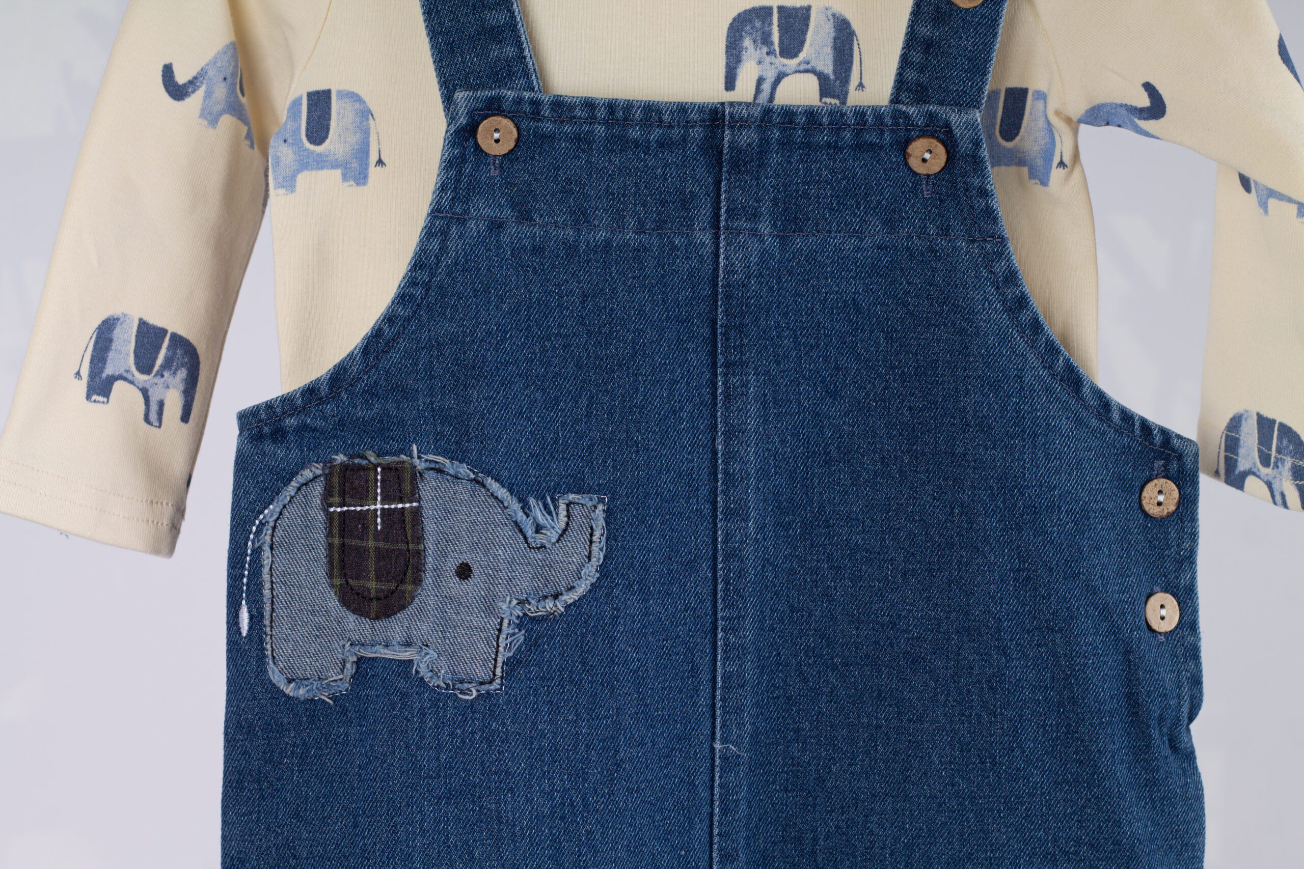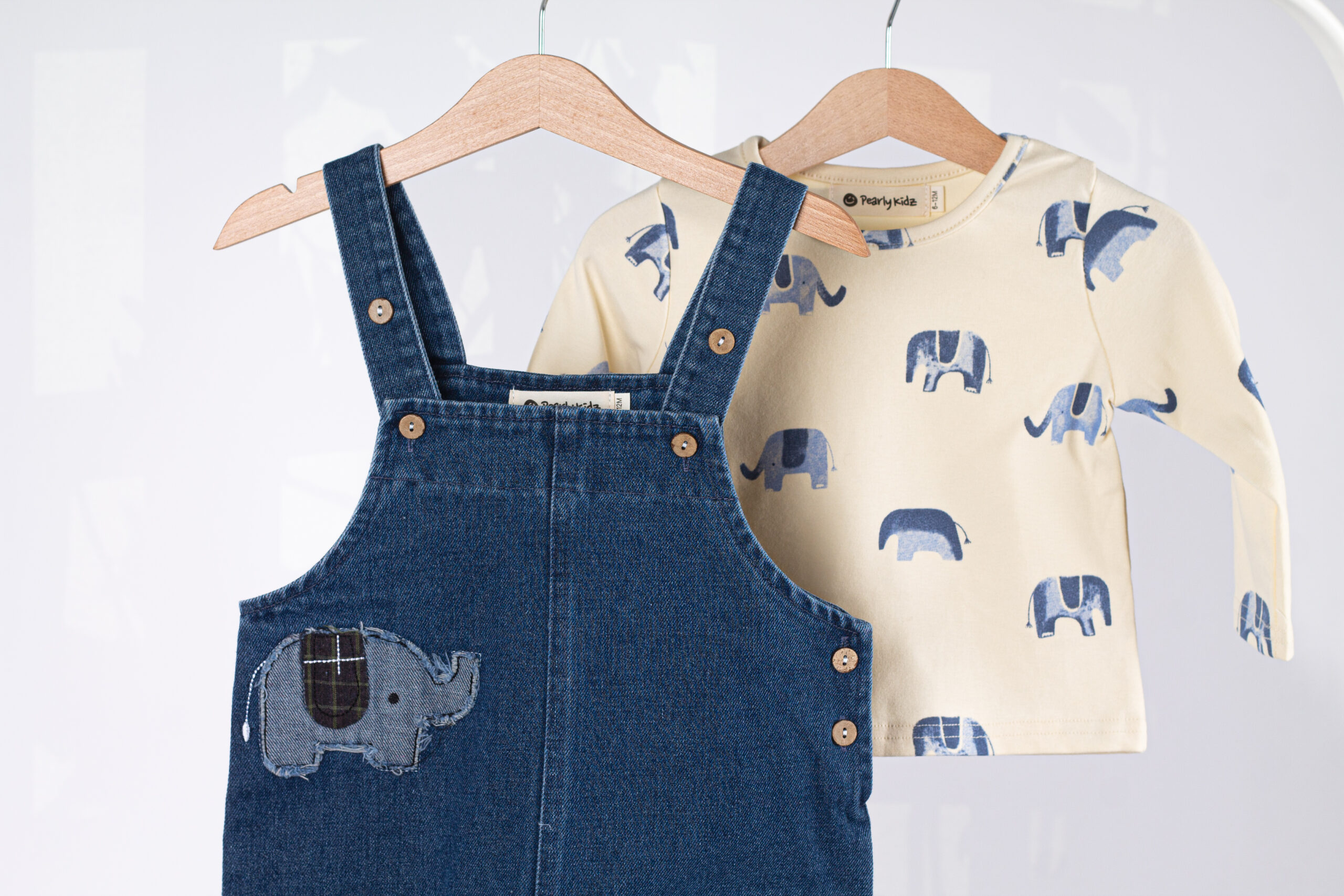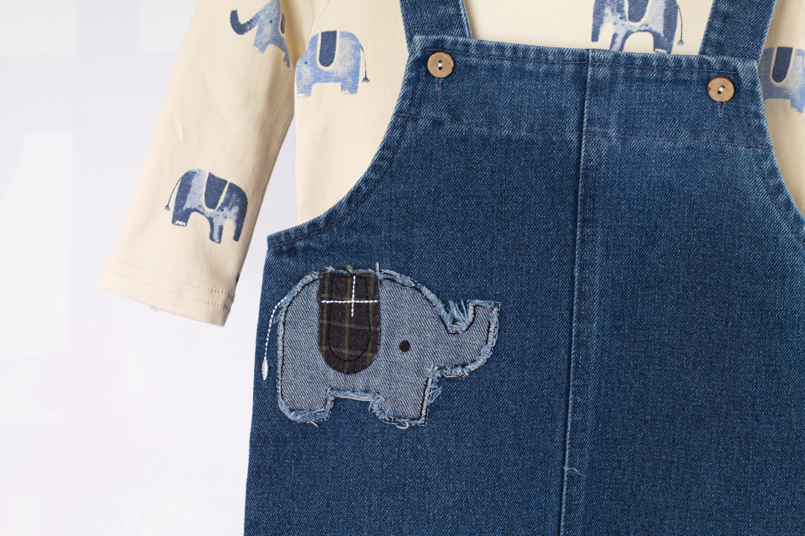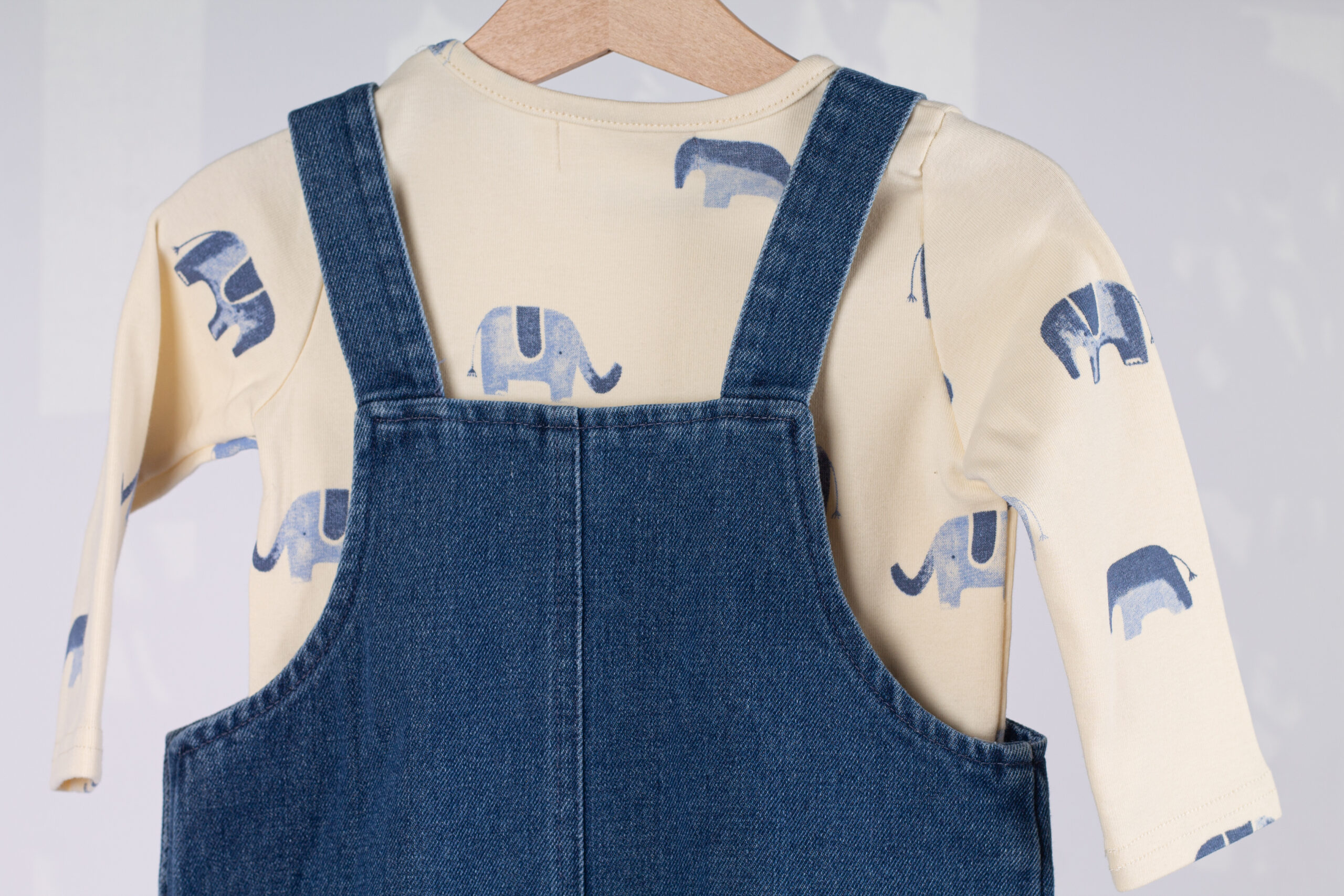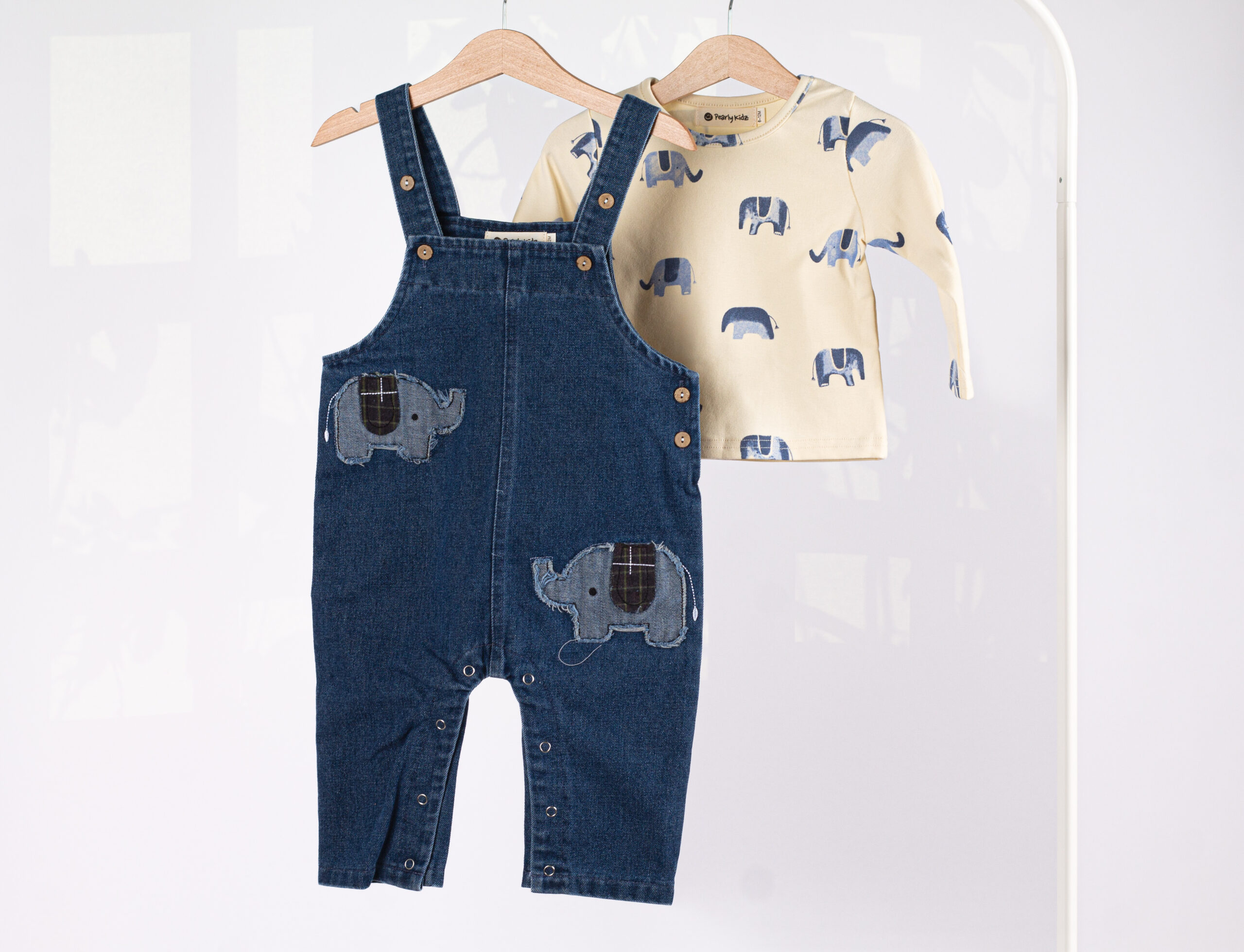 طقم كيوت وعملي بلمسة طفولية محبّبة، مكوّن من سالوبيت جينز خفيف مزين بتطريز فيل لطيف على الجانبين، مع قميص طويل بنقشة فيلة تكمل الإطلالة بشكل مثالي.