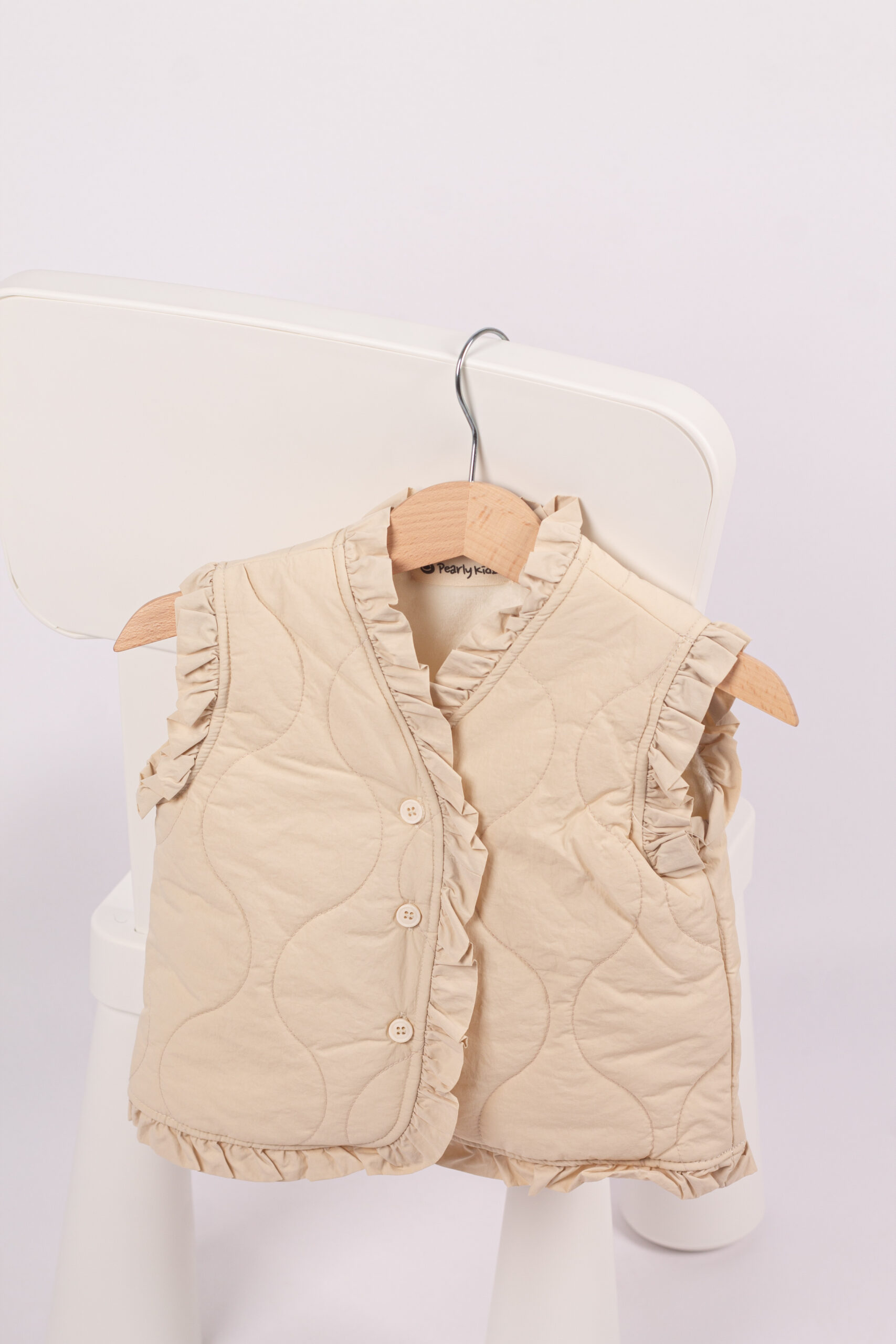 فيست خفيف ومبطن بلون كريمي ناعم، تصميم أنيق مع لمسات كشكش على الأكتاف والحواف لإضافة طابع لطيف ورقيق. مناسب للبس فوق أي طقم ليعطي دفء خفيف وشكل مرتب في نفس الوقت. قطعة أساسية وعملية تناسب كل الإطلالات اليومية.