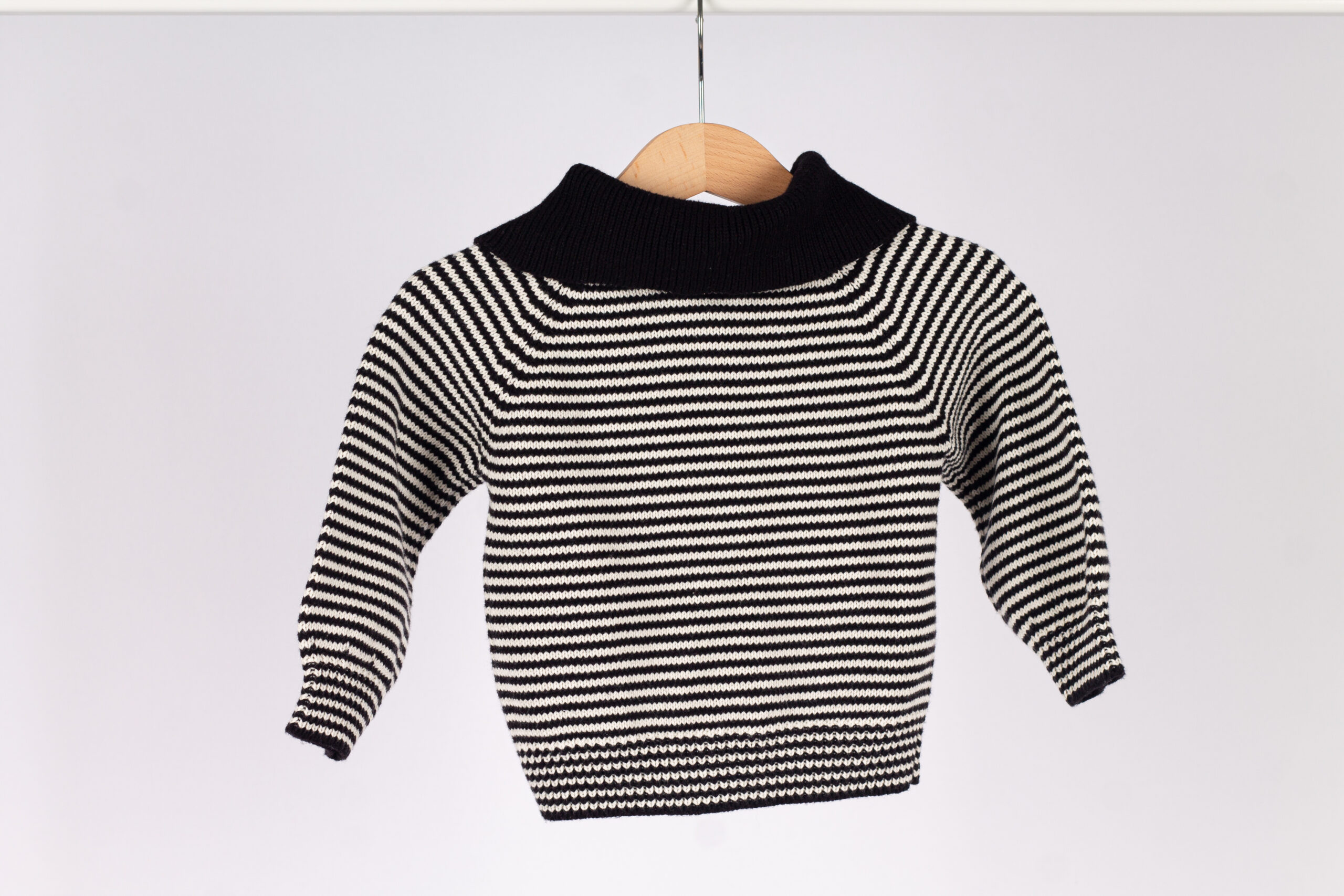 Be the first to review “83557 بلوفر أطفال مخطط بياقة واسعة – أسود وأبيض” Cancel reply