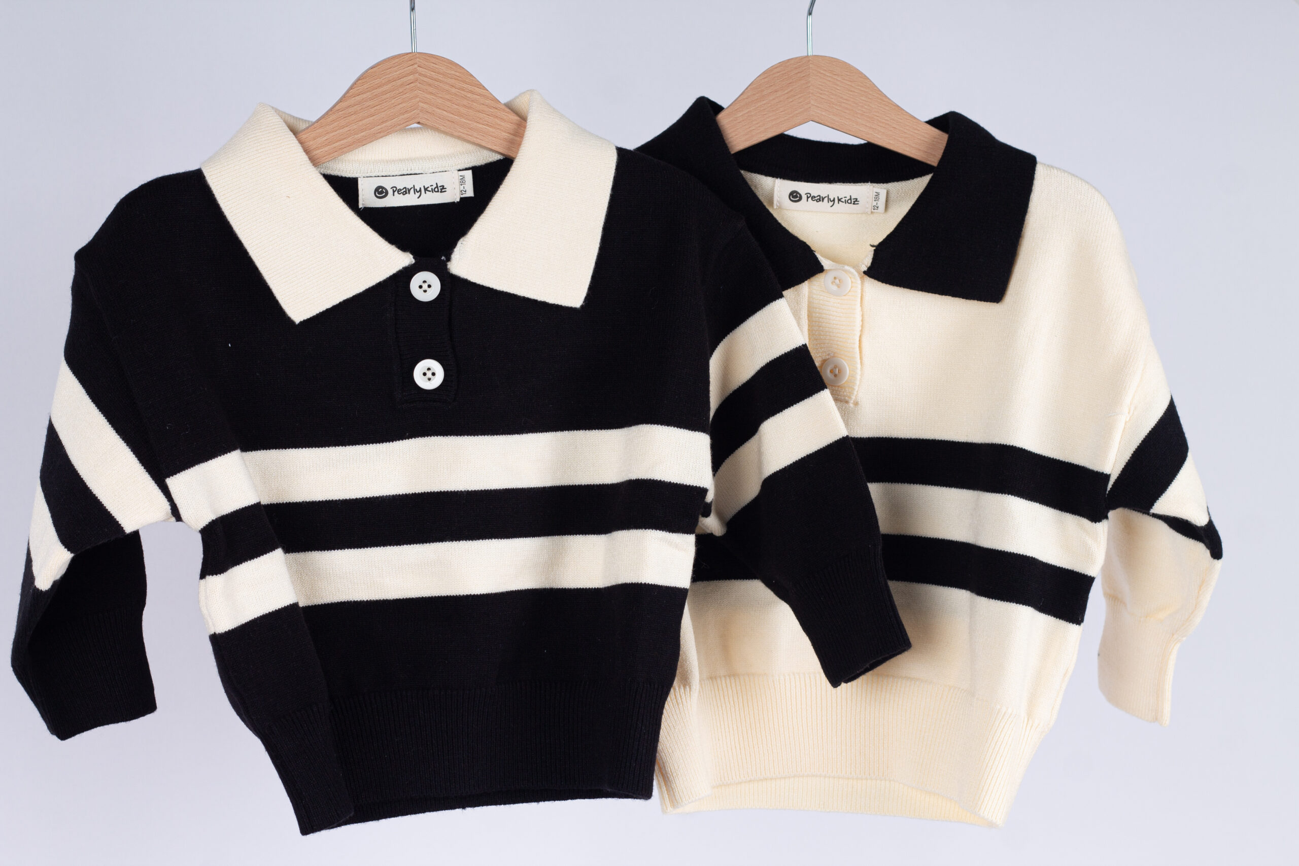 WD1152 بلوزة مخططة بياقة كلاسيكية – Striped Classic Collar Knit
