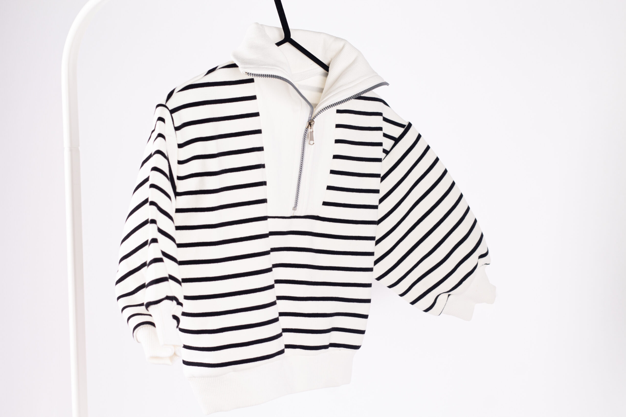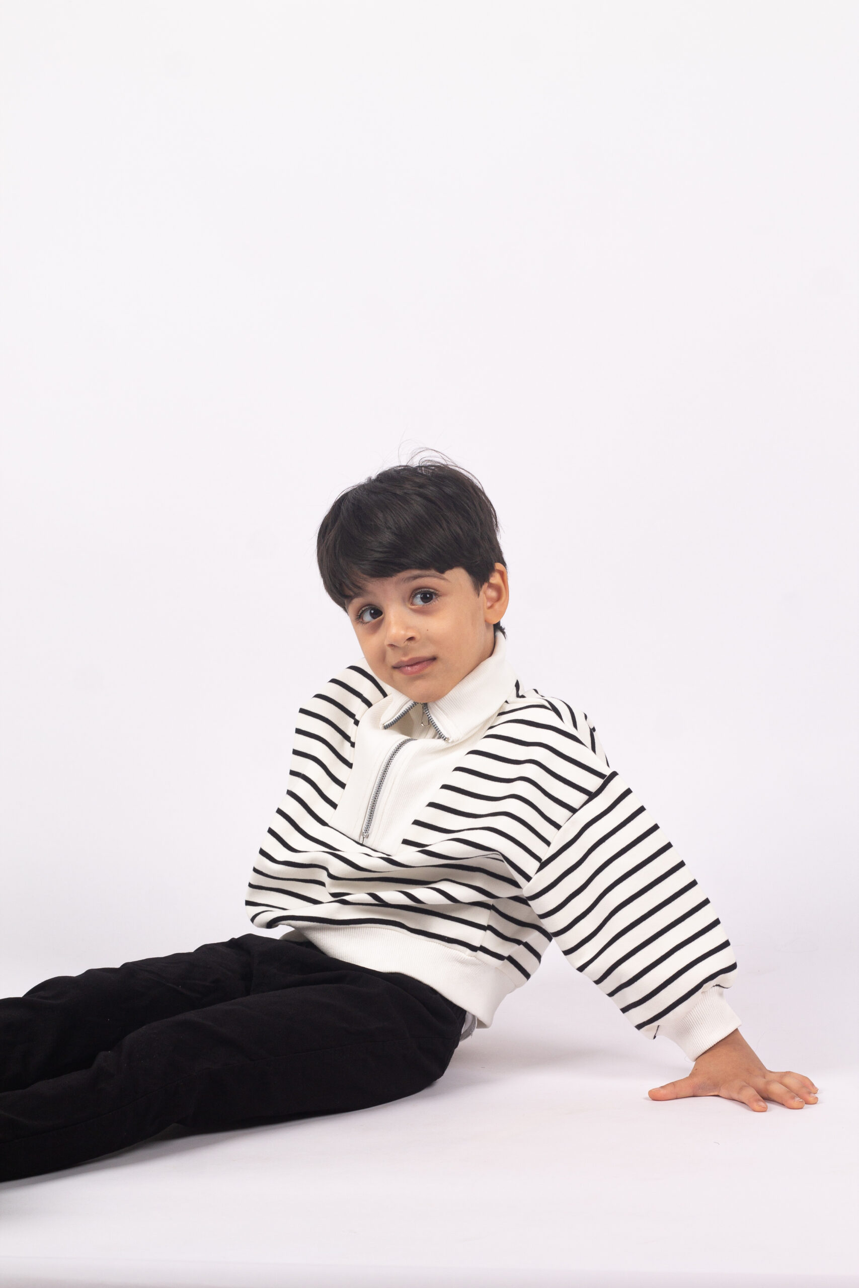 سويتر شتوي مخطط بلونين أنيقين، مصنوع من قماش ناعم ومريح مناسب لأجواء البرد. يتميز بتصميم الياقة العالية مع سحاب في المنتصف لإطلالة عملية وسهلة اللبس. قصّة مريحة تسمح بحرية الحركة وتفاصيل مخططة كلاسيكية تضيف لمسة فخمة ومودرن. مناسب للبس اليومي والخروج، ويعطي طفلك دفء وأناقة في نفس الوقت.