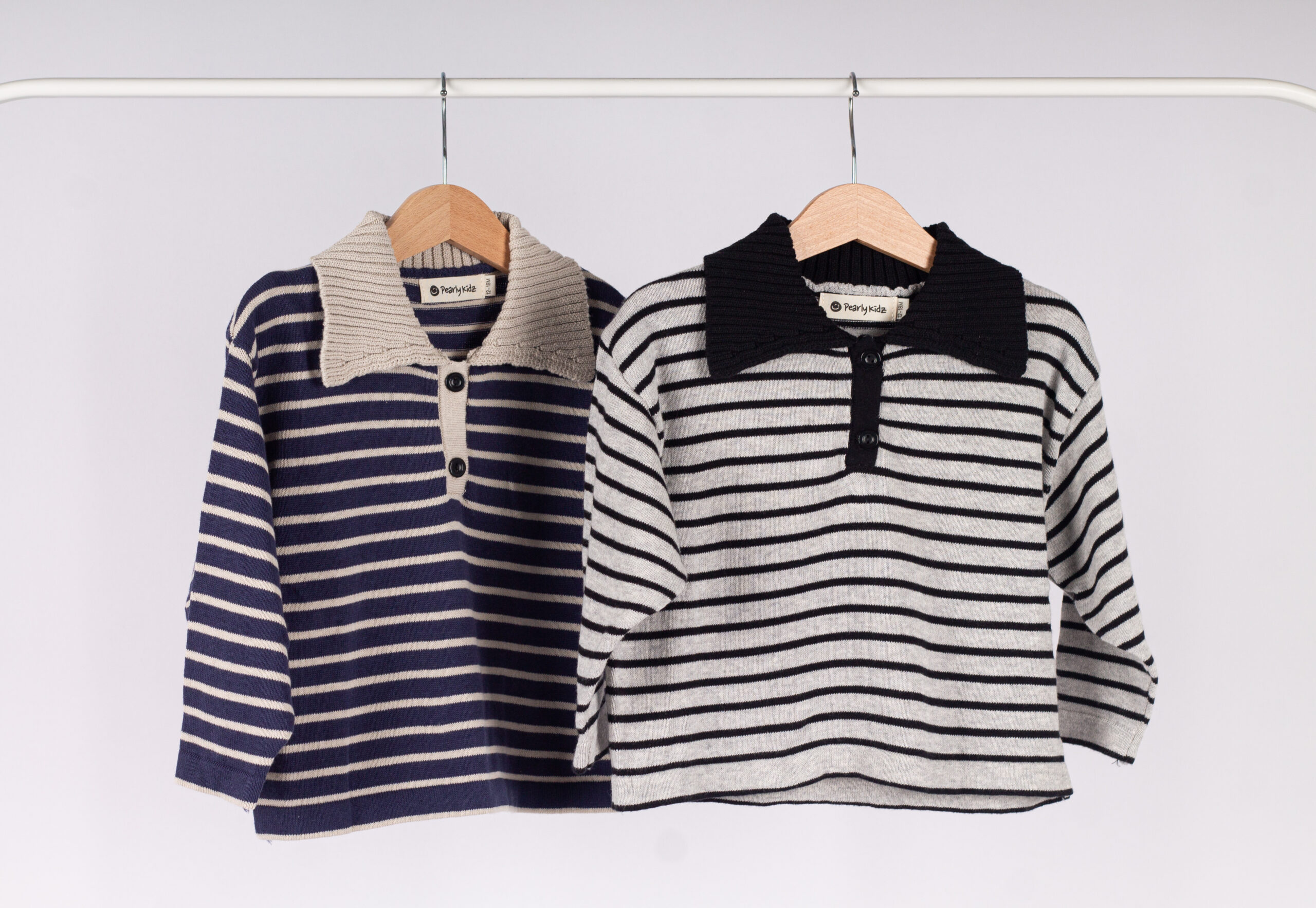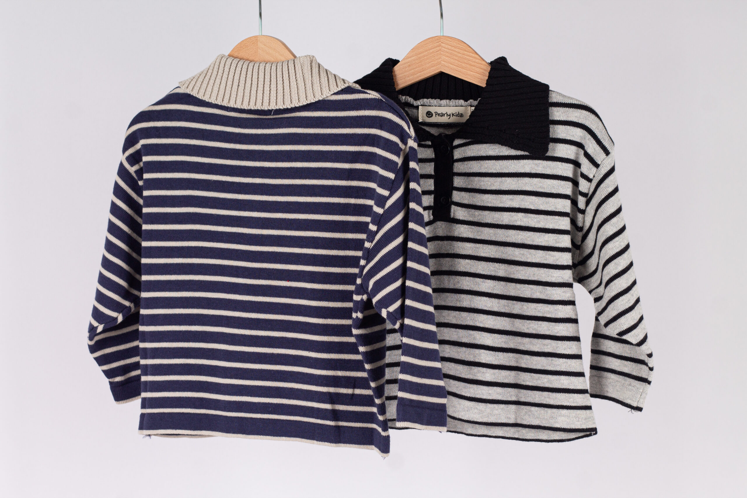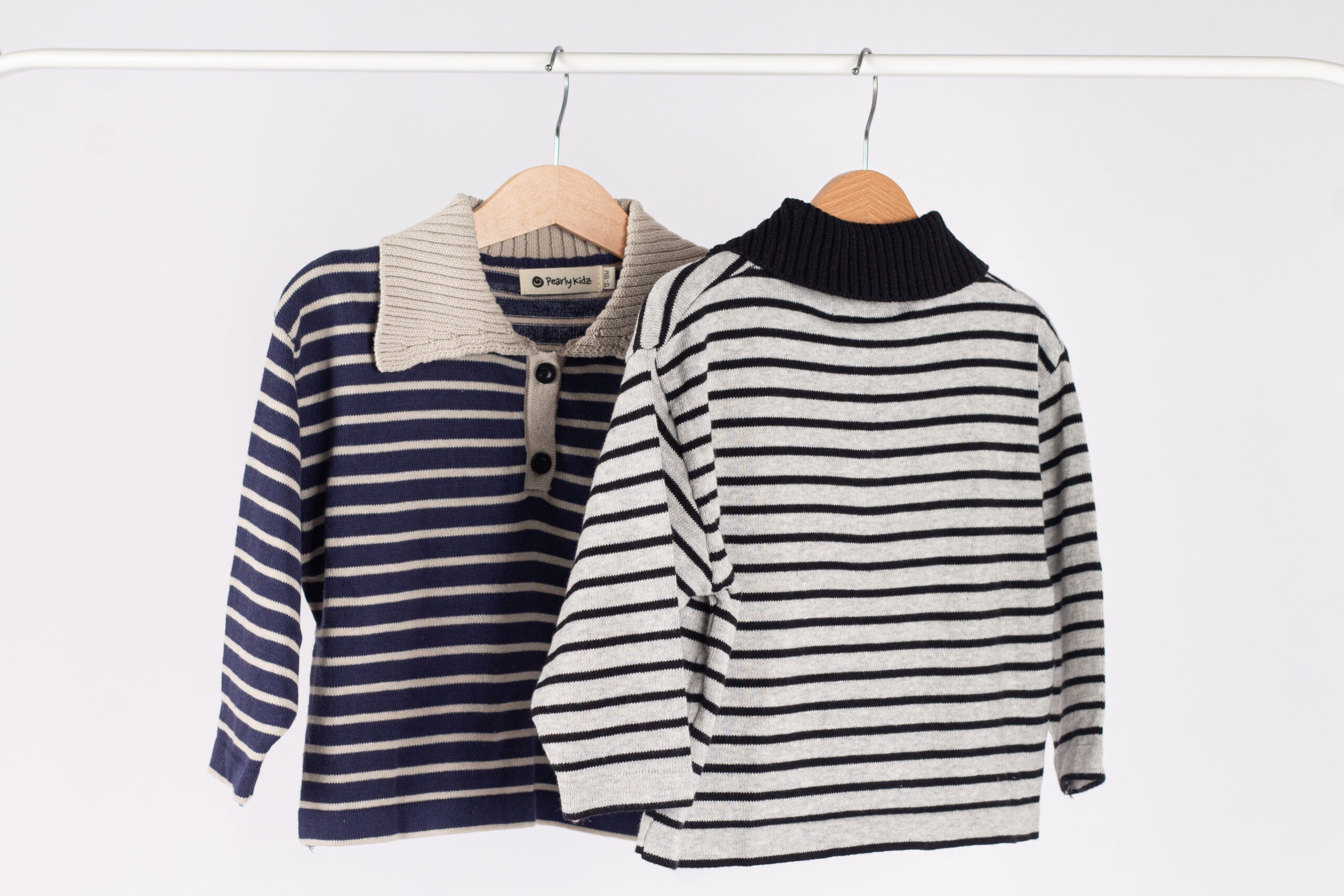 كنزة شتوية راقية بلمسة كاجوال، بتصميم مخطط كلاسيكي يناسب كل الطلعات ويعطي طفلك إطلالة مرتّبة ودافئة طول اليوم.