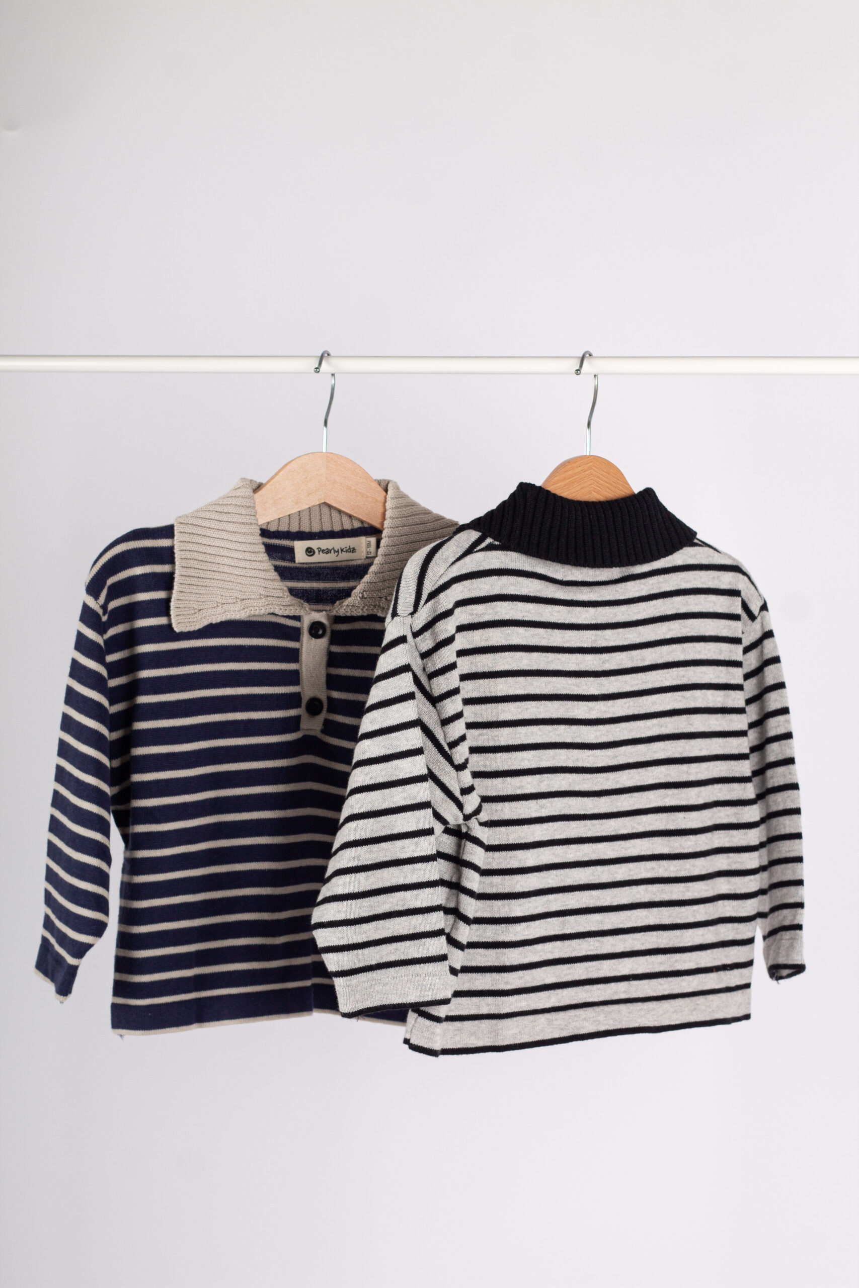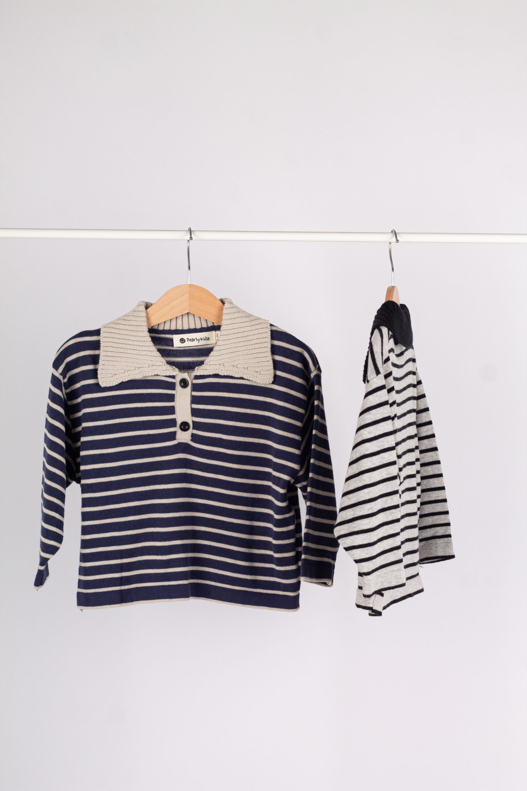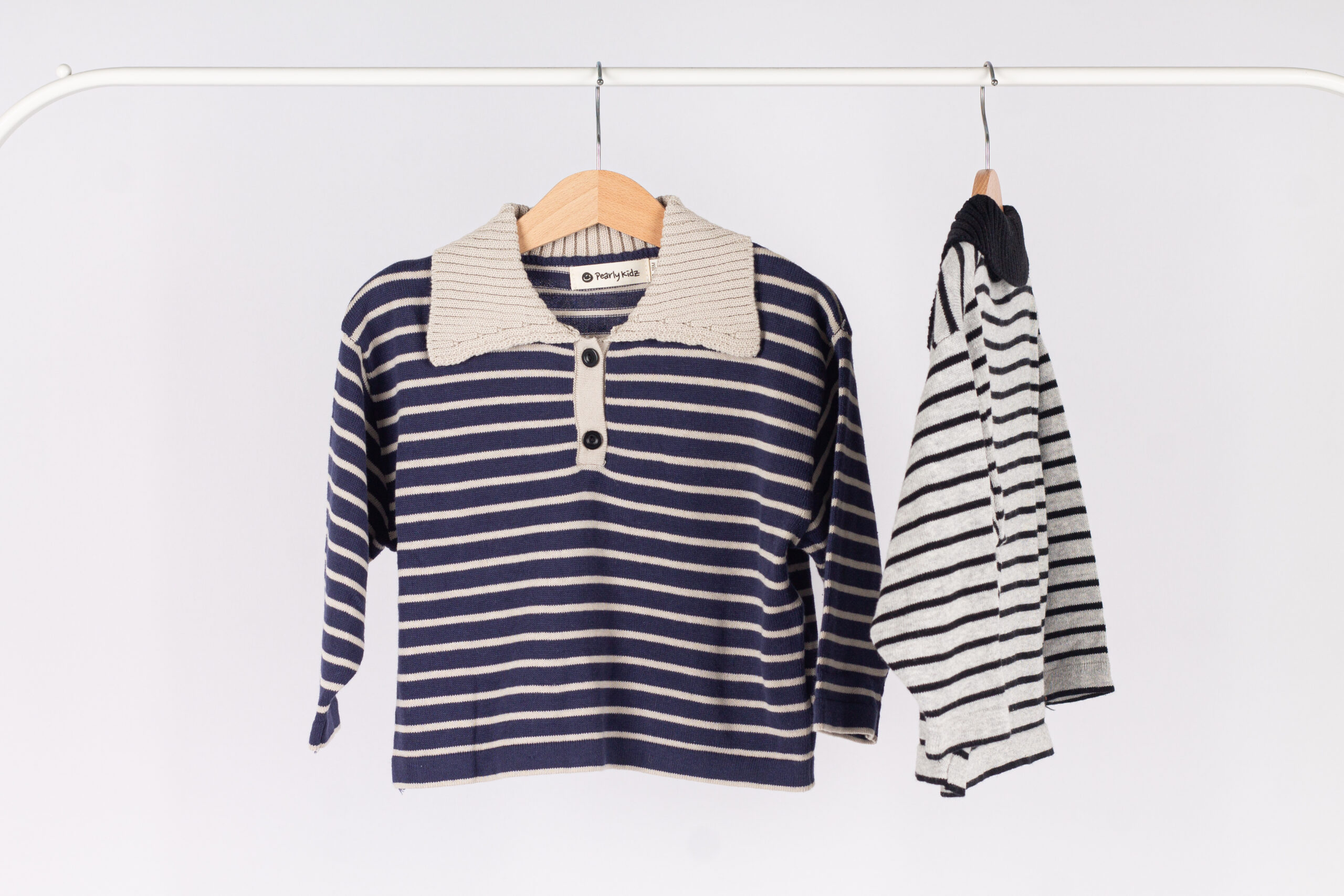 كنزة شتوية راقية بلمسة كاجوال، بتصميم مخطط كلاسيكي يناسب كل الطلعات ويعطي طفلك إطلالة مرتّبة ودافئة طول اليوم.