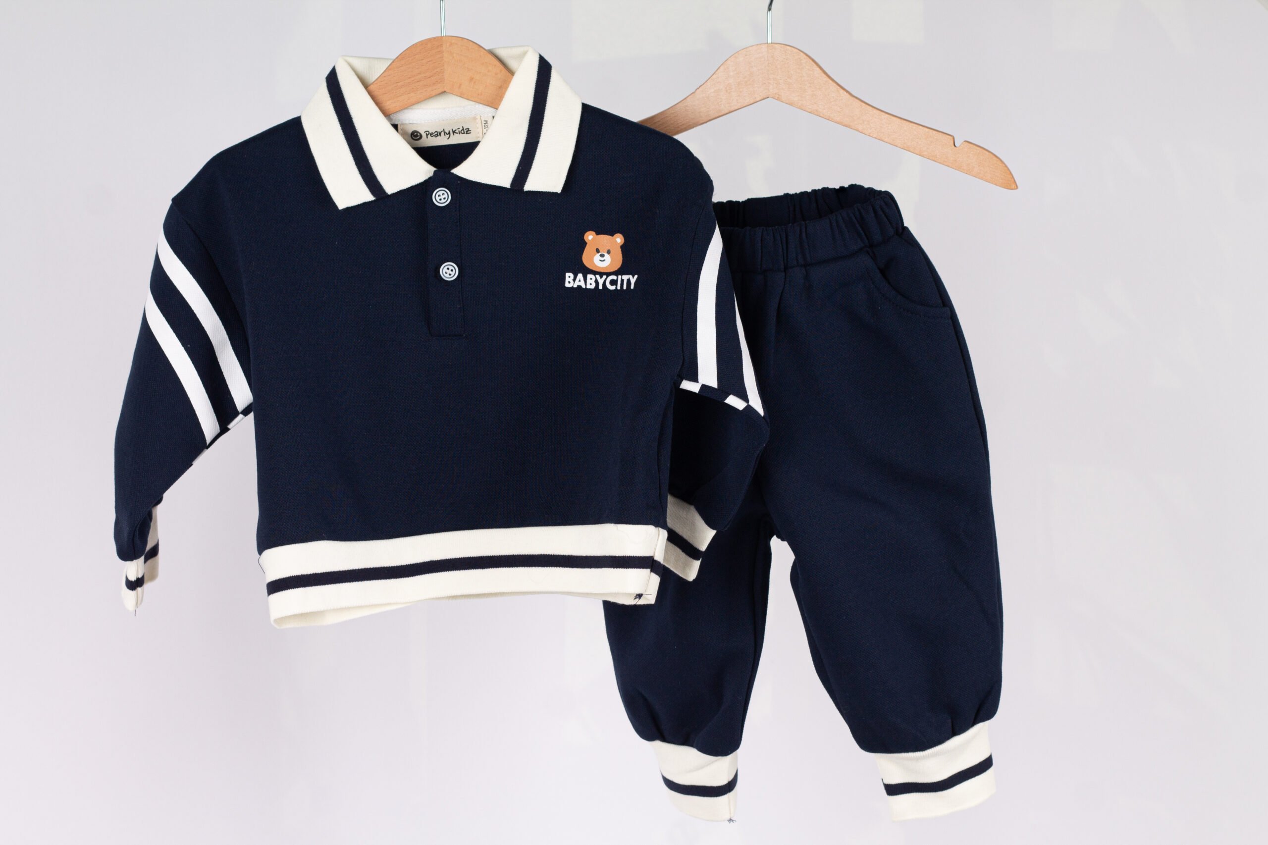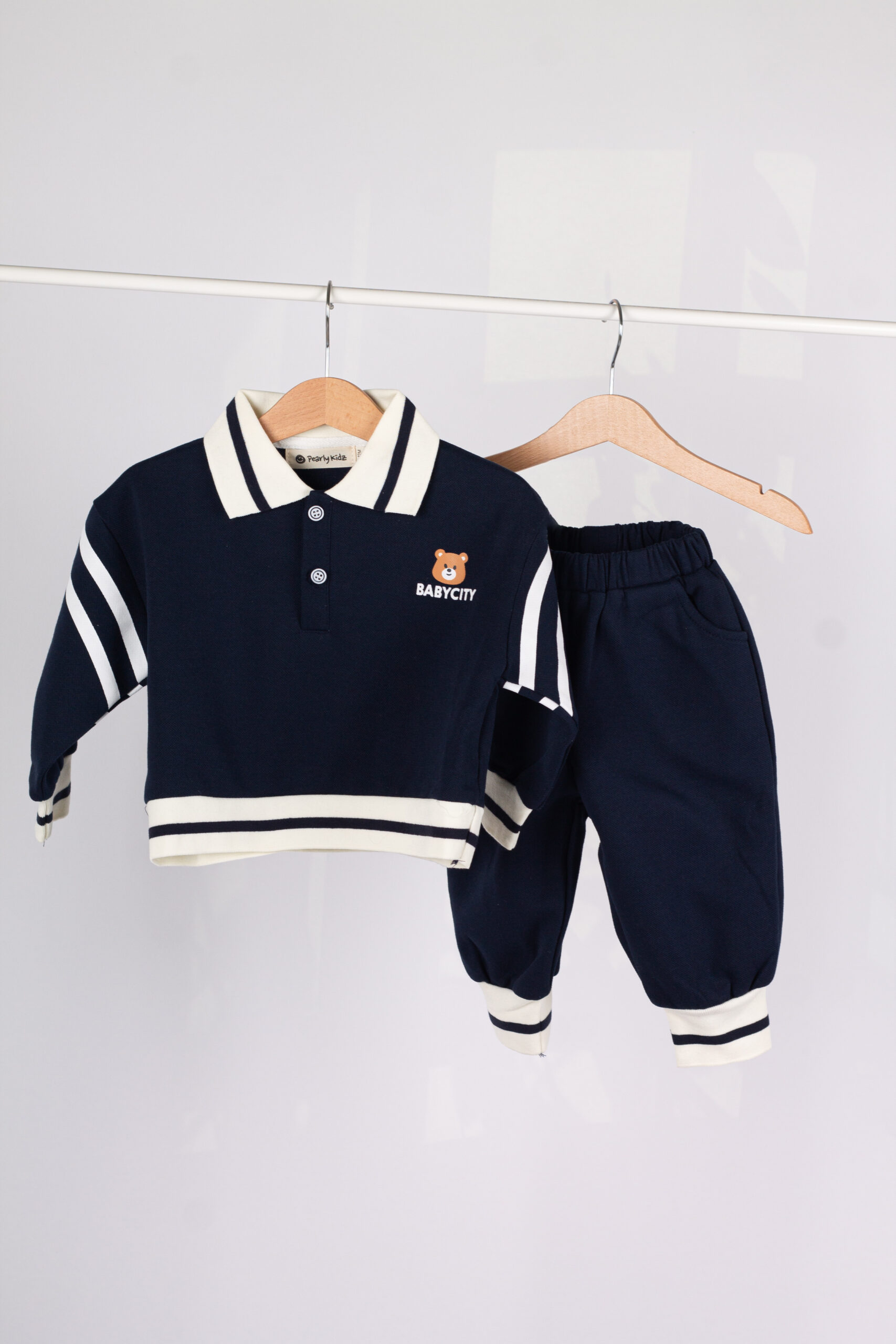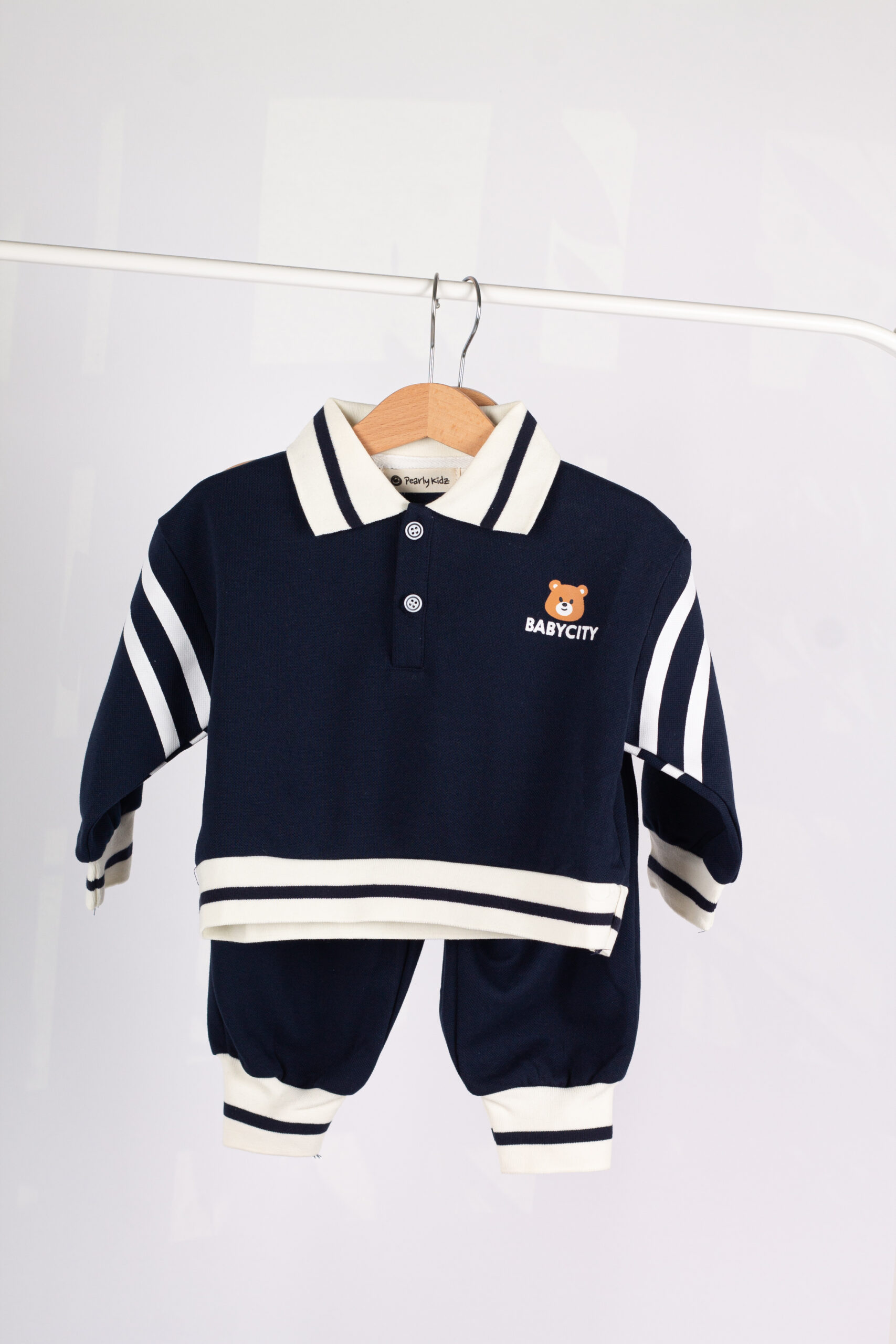 WD3703 طقم أولادي قطعتين – تيشيرت بولو كحلي + بنطال مريح