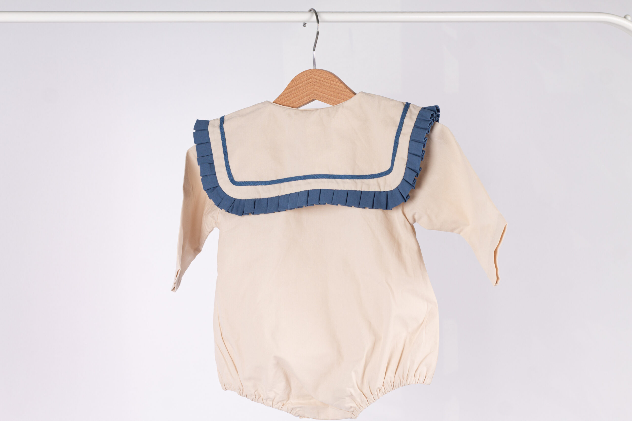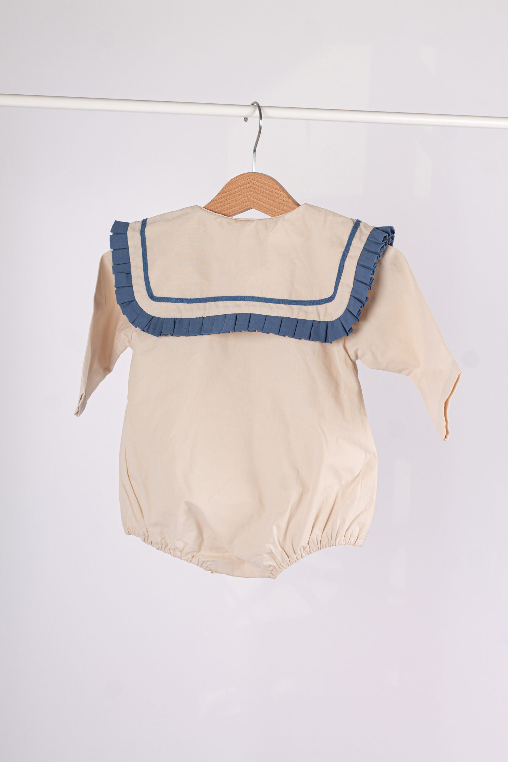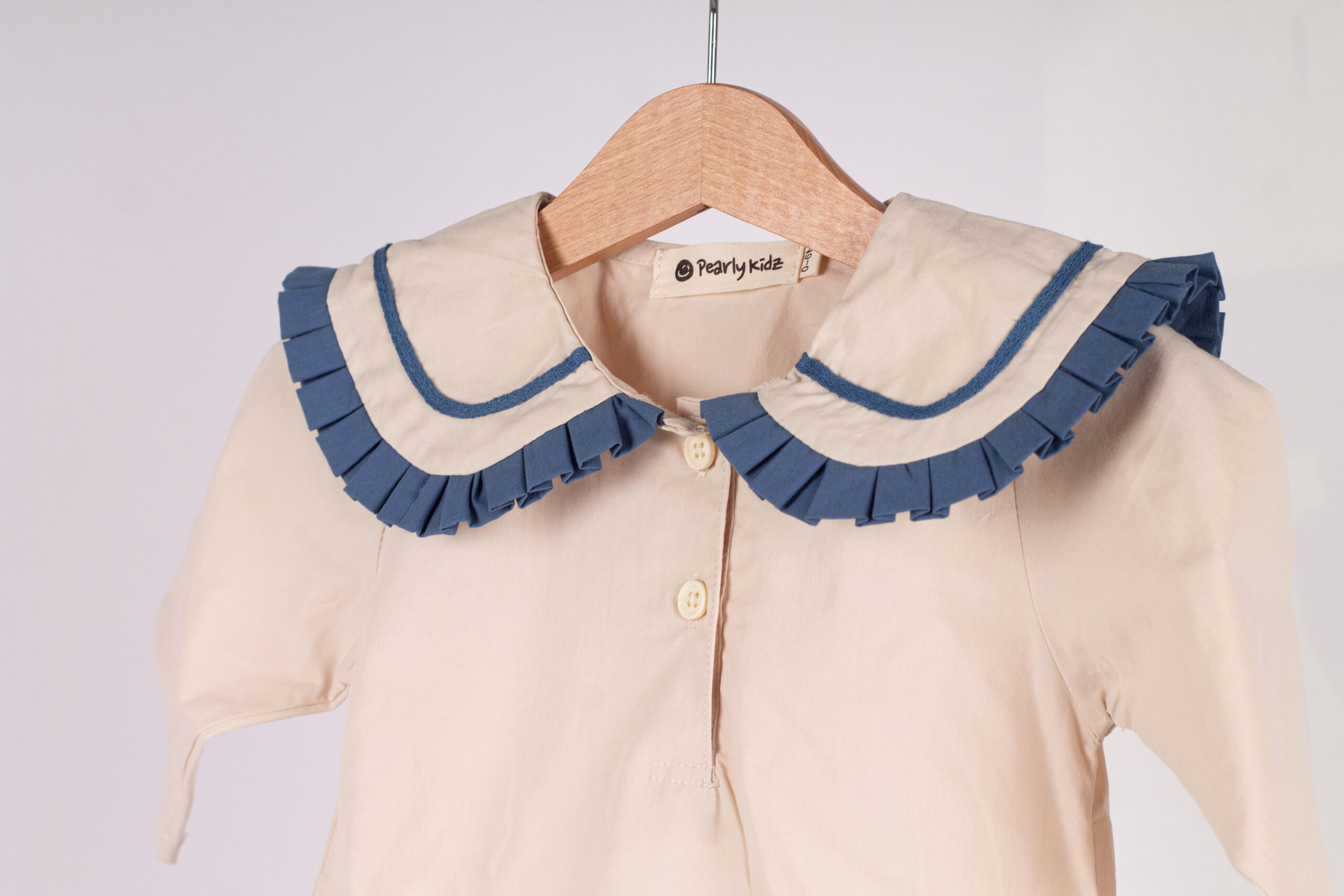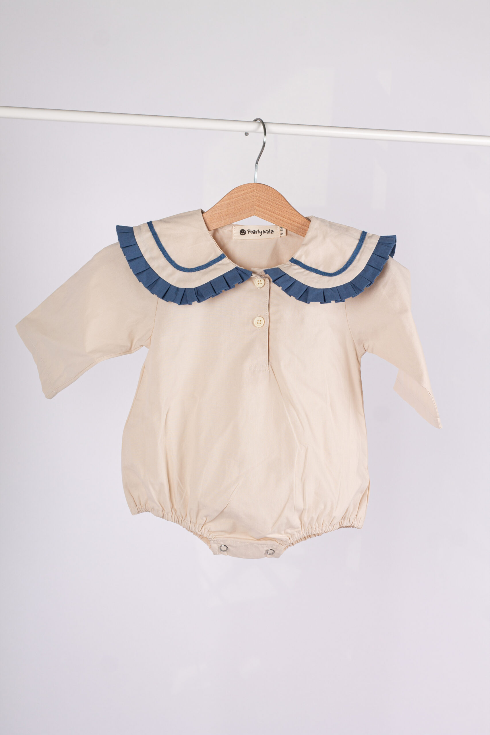 WD3810 رومبر أطفال بياقة كشكش فاخرة – بيج × أزرق
