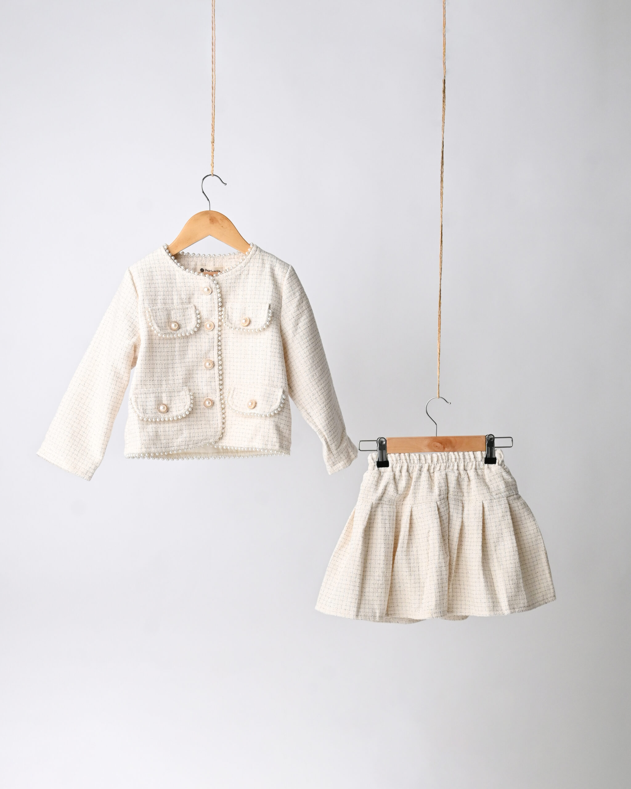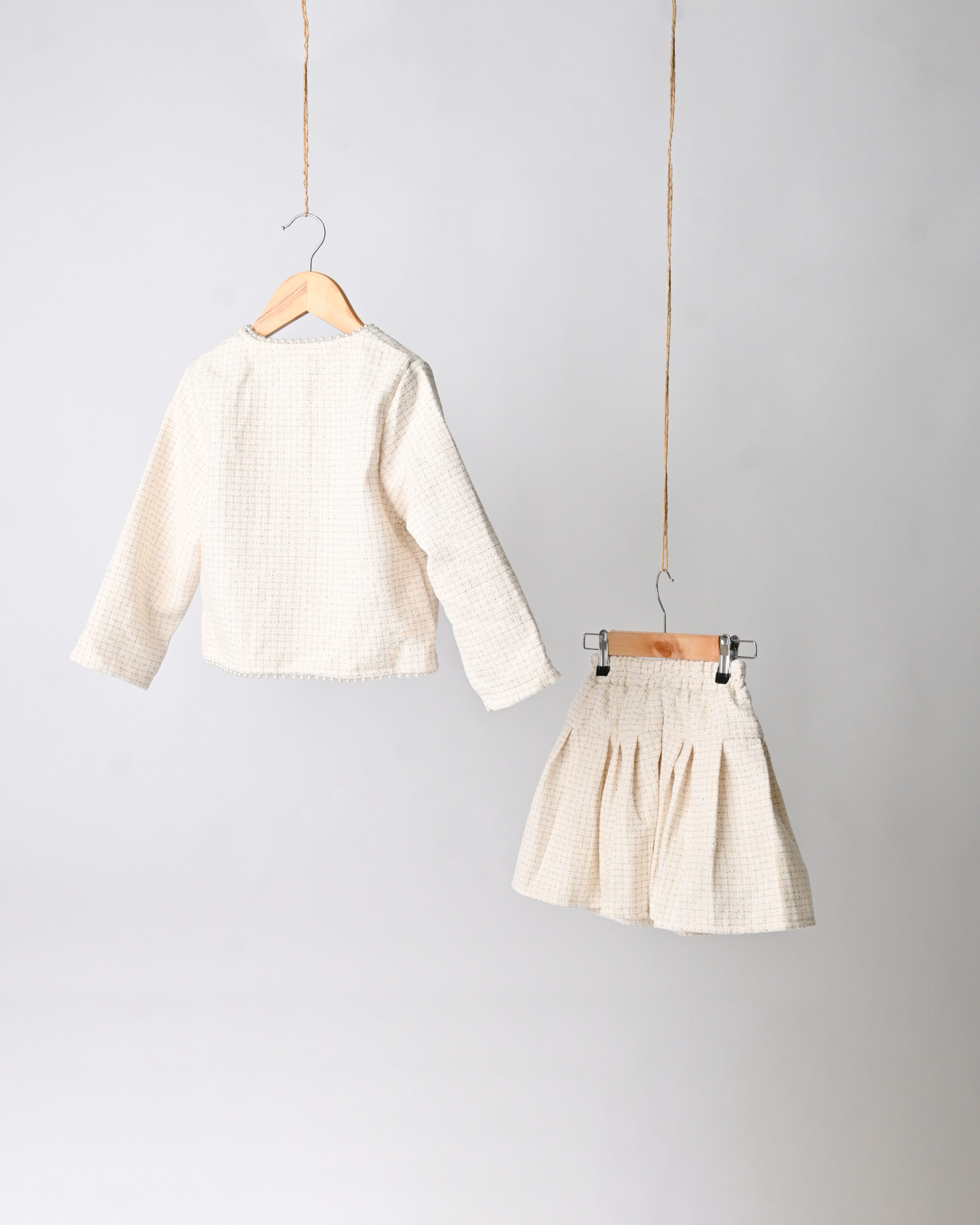 طقم أطفال مكوّن من جاكيت وتنورة بتصميم راقٍ مستوحى من الأسلوب الكلاسيكي، يتميز بتفاصيل ناعمة وحواف مزينة ولمسات أنيقة تضيف فخامة هادئة. مصنوع من قماش مريح ومرتب، مناسب للمناسبات الخاصة والخروجات الأنيقة، ليمنح طفلتك إطلالة أنثوية راقية تجمع بين الراحة والأناقة. ✨🧸