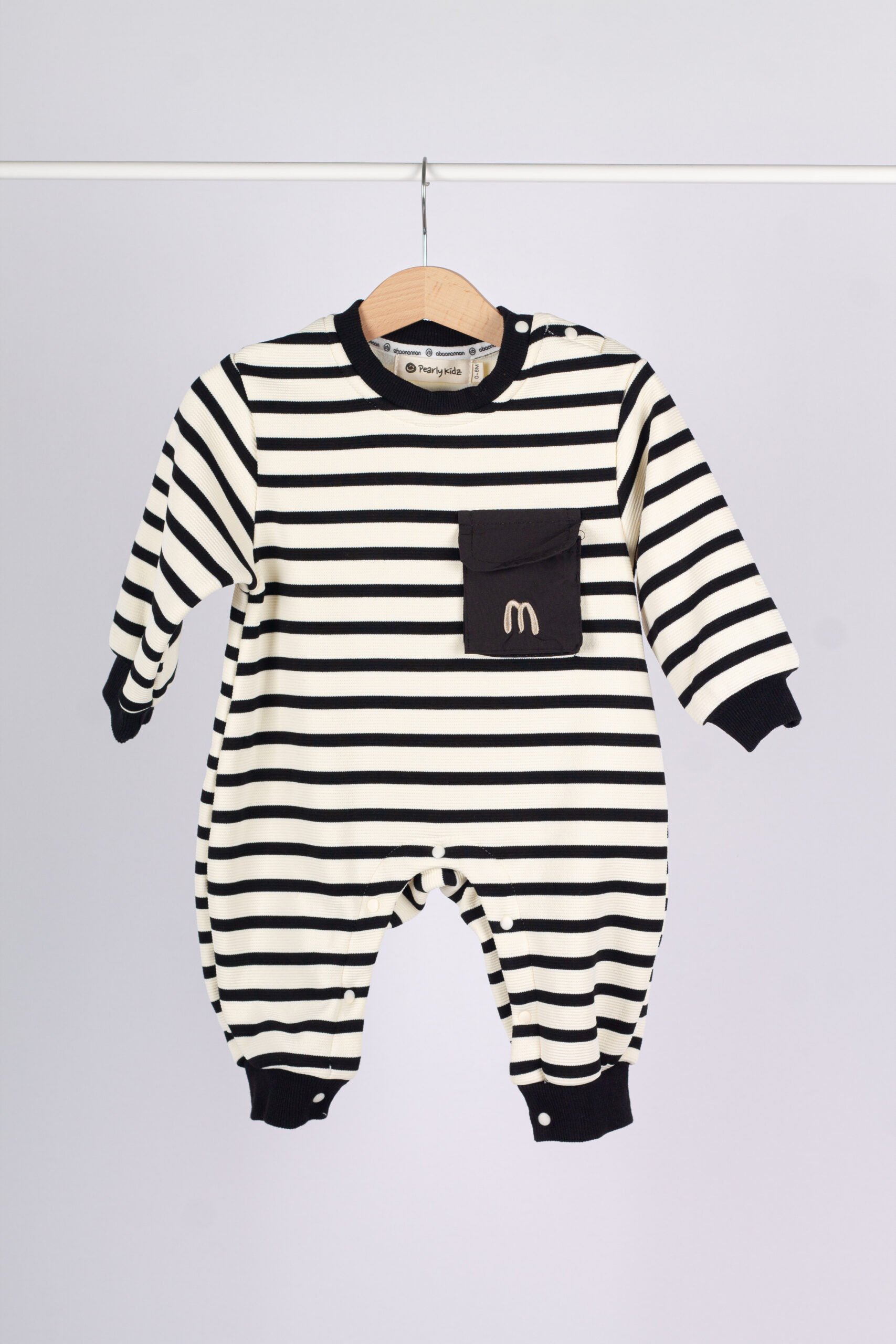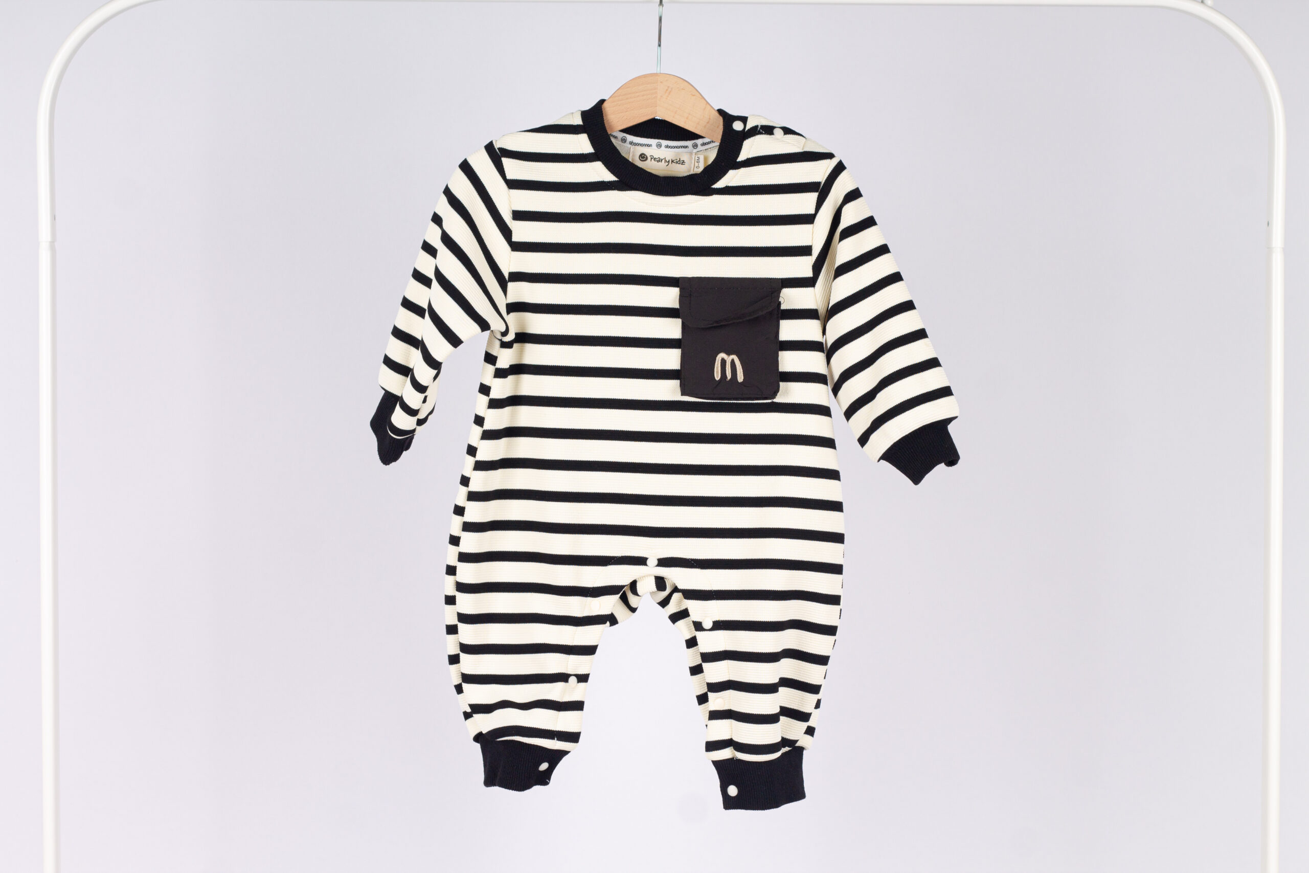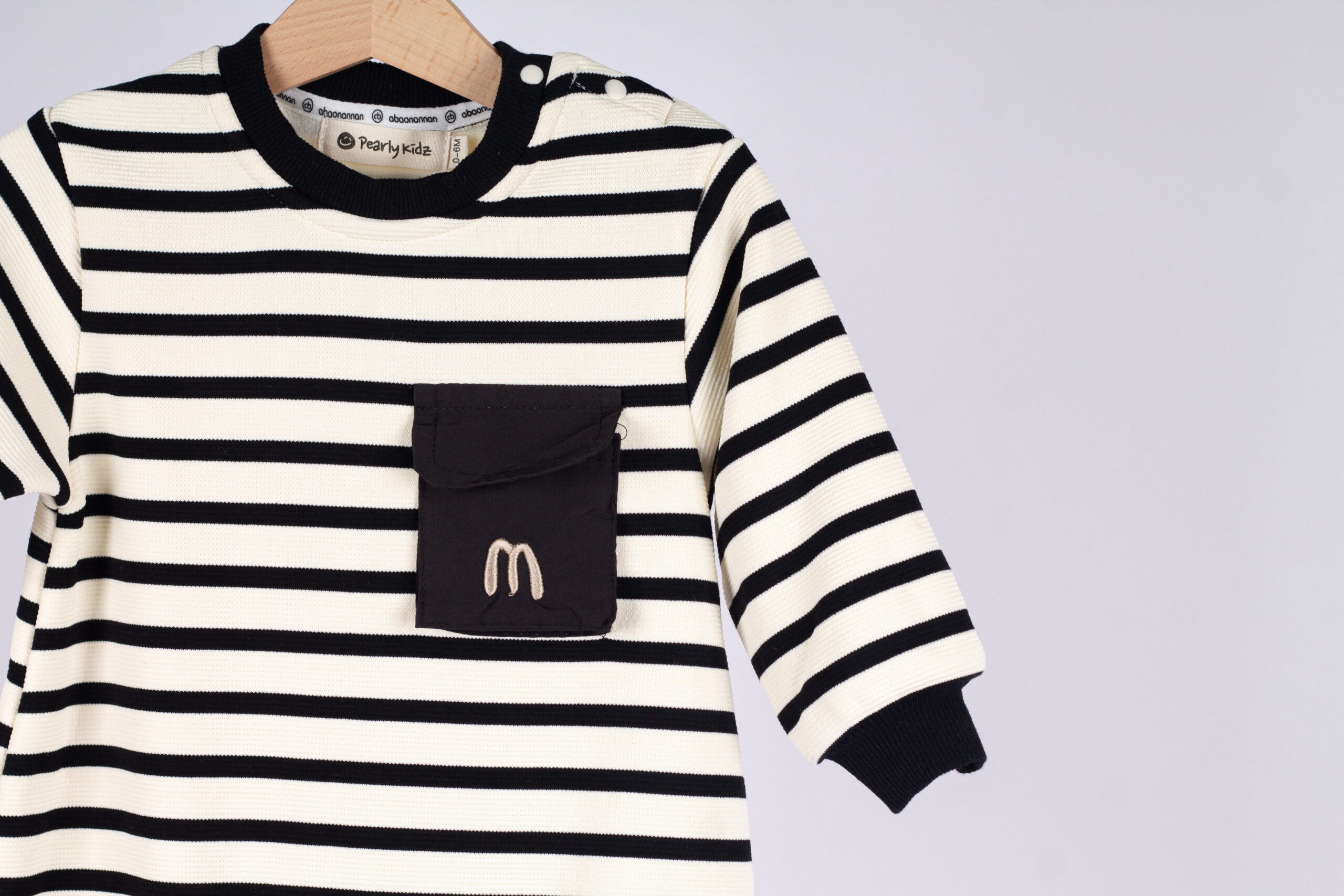 بودي شتوي عملي وناعم بتصميم مخطط كلاسيكي بلونين، مع جيب أمامي يعطيه لمسة لطيفة ومميزة. قماش مريح ومطاطي مناسب لحركة الطفل طوال اليوم، مع أزرار سفلية لتسهيل اللبس والتبديل. خيار مثالي للبس اليومي أو الطلعات البسيطة.
