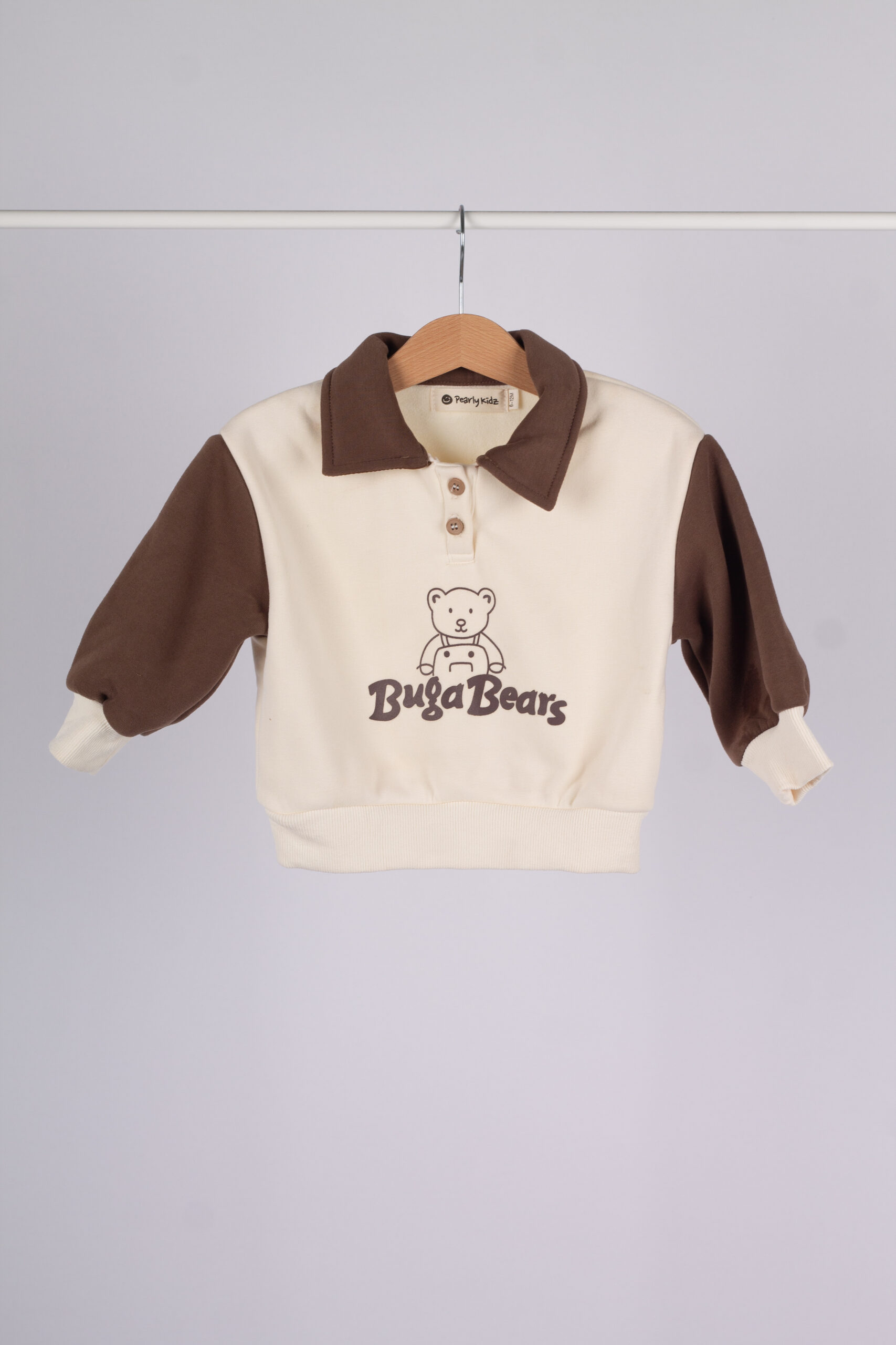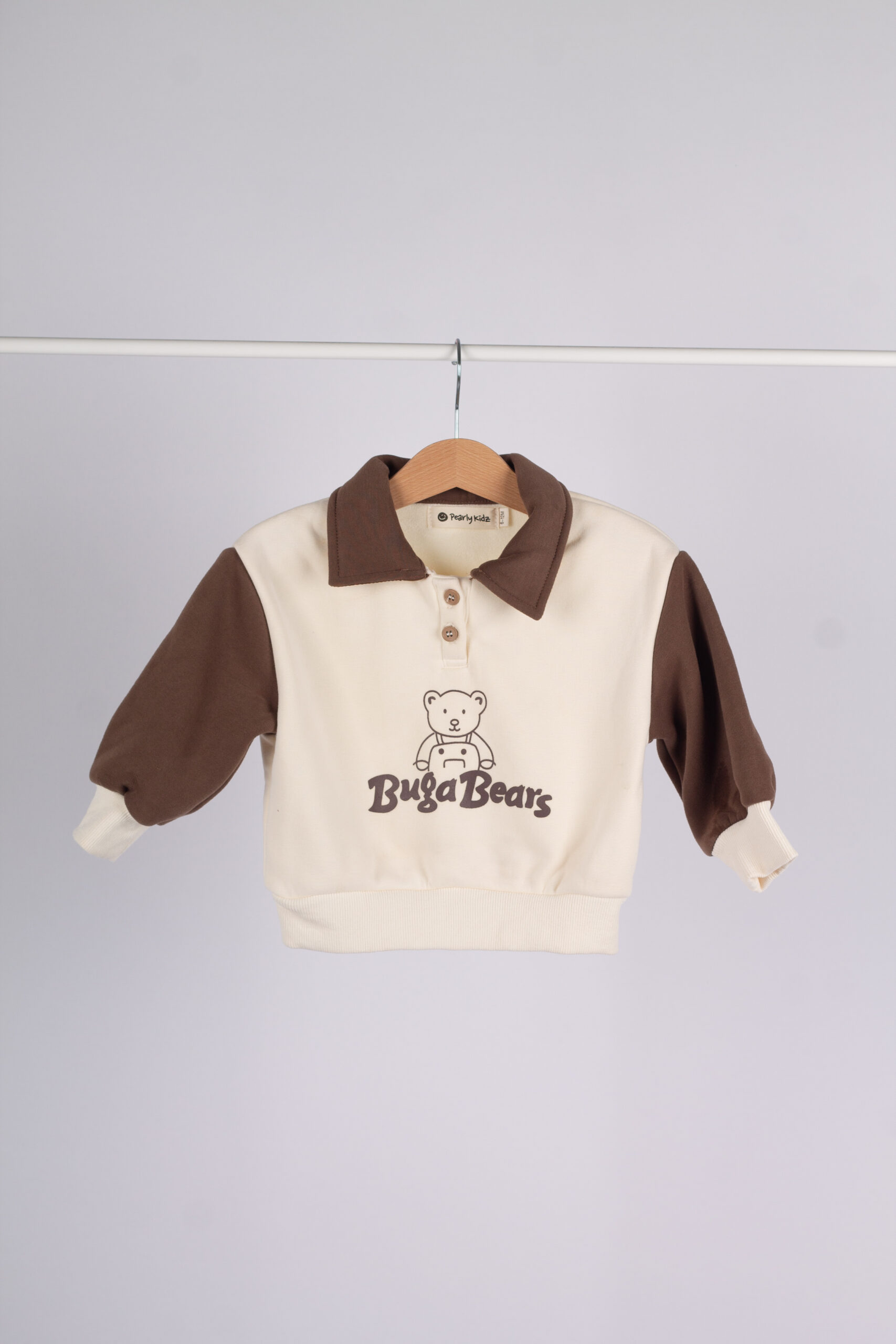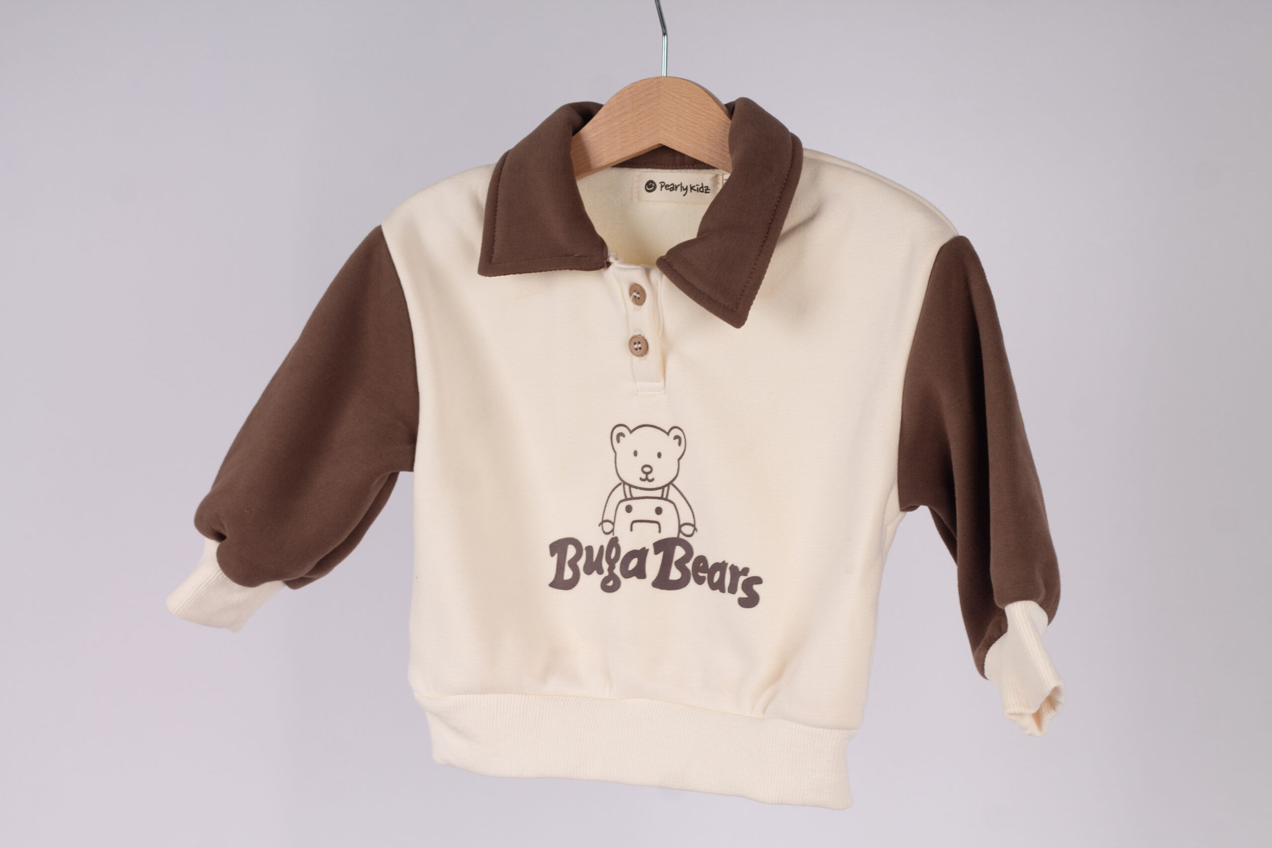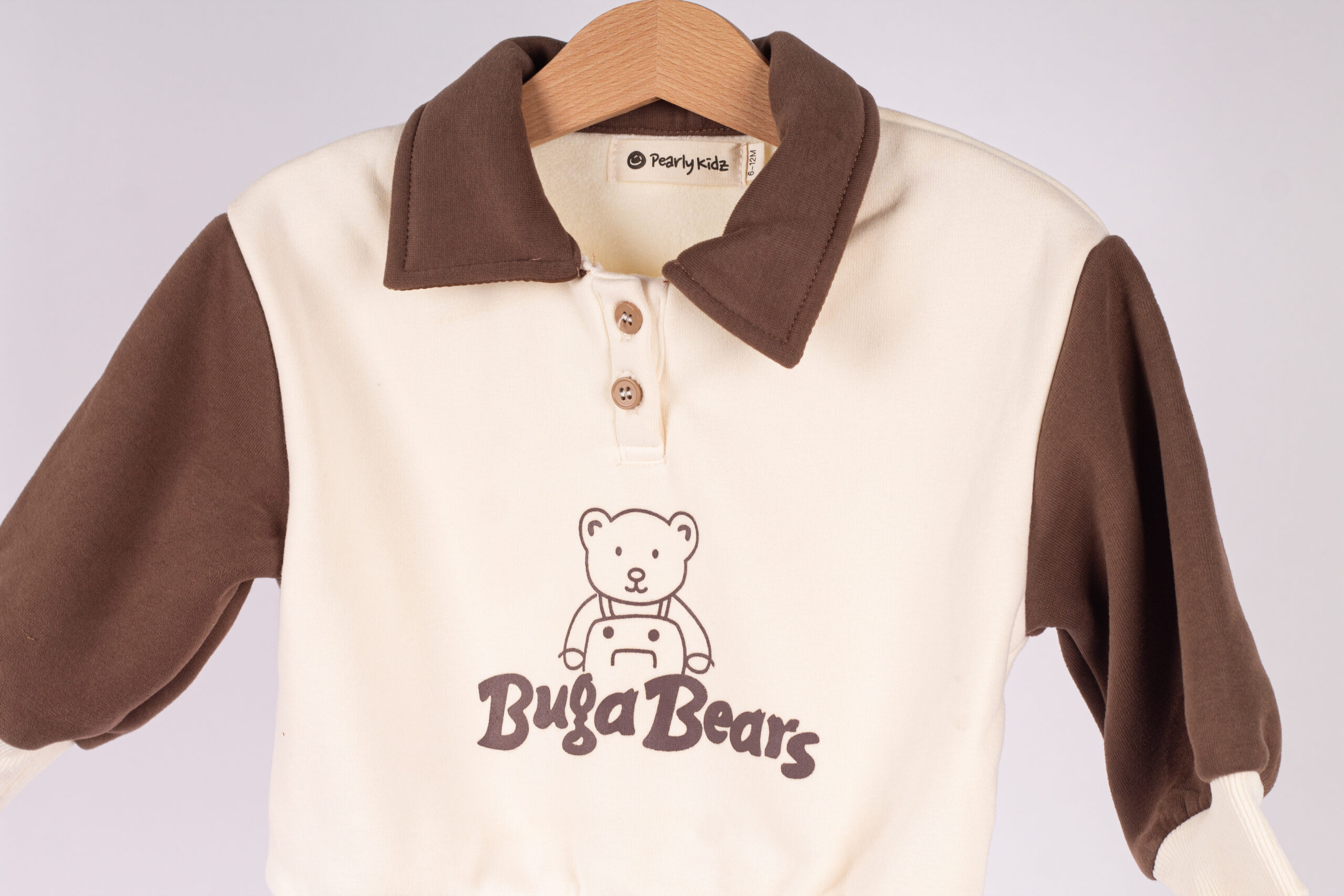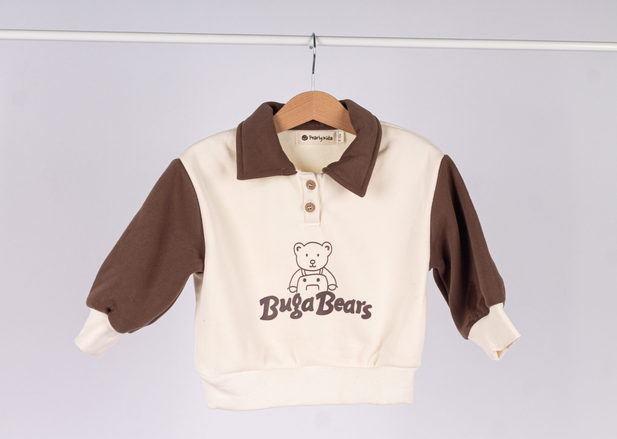 بلوزة بولو مريحة وناعمة بتصميم طفولي لطيف، تجمع بين الألوان الهادئة وطبعة الدب الجميلة “Buga Bears”، لتمنح طفلك إطلالة كاجوال مرتّبة.