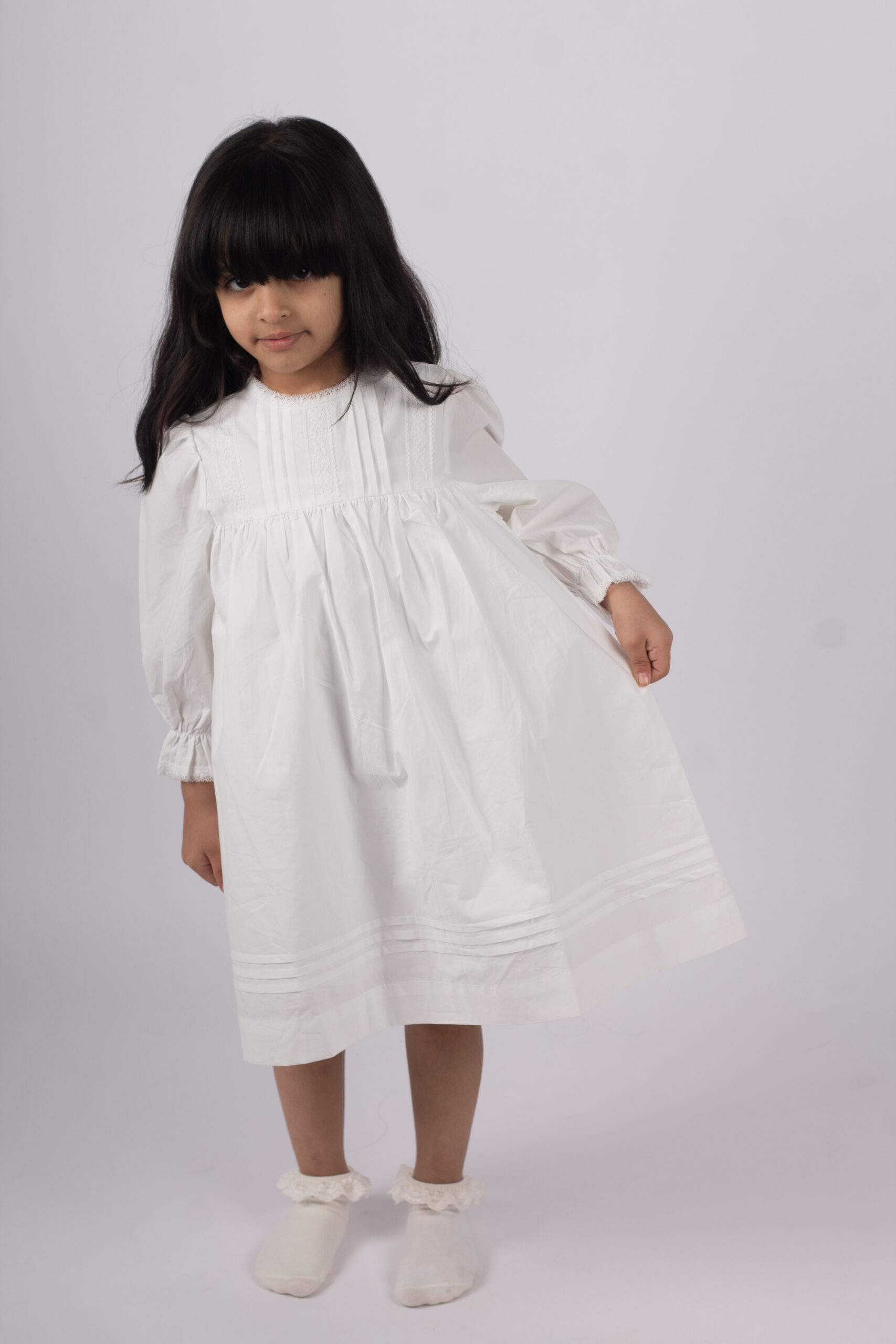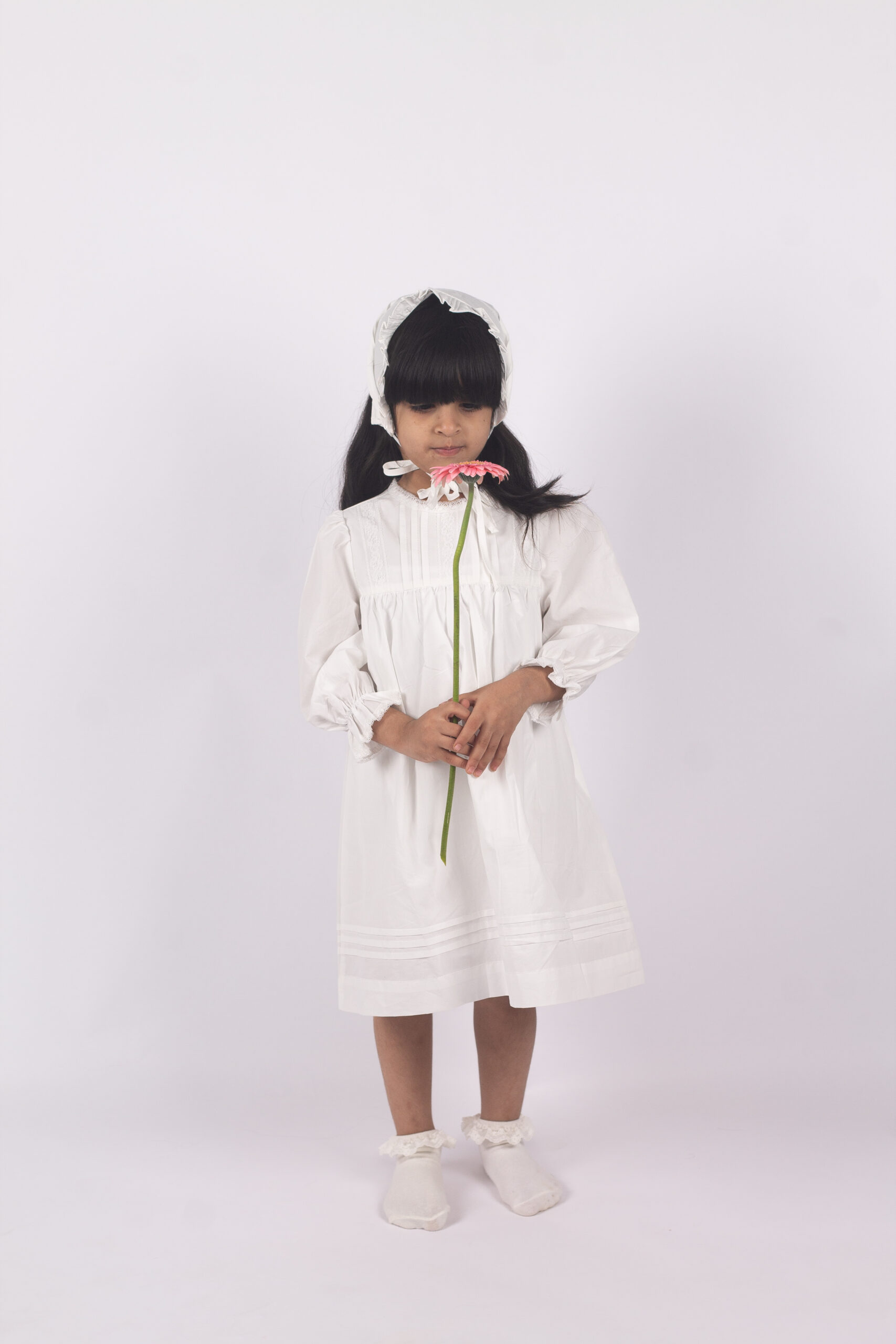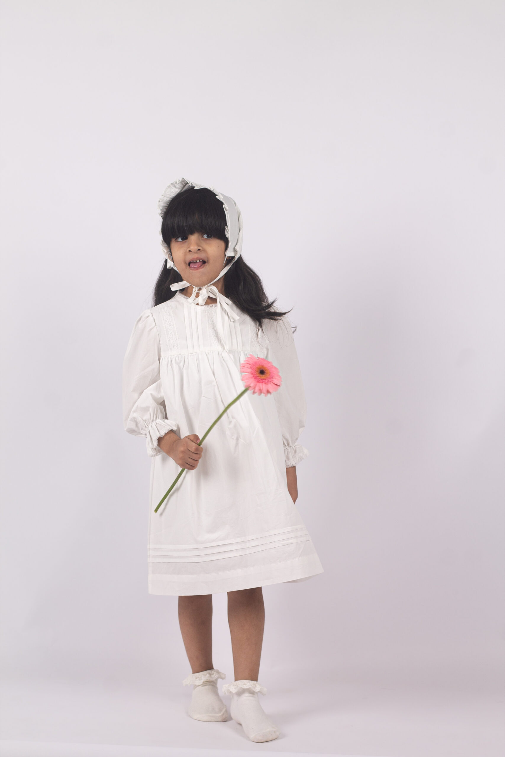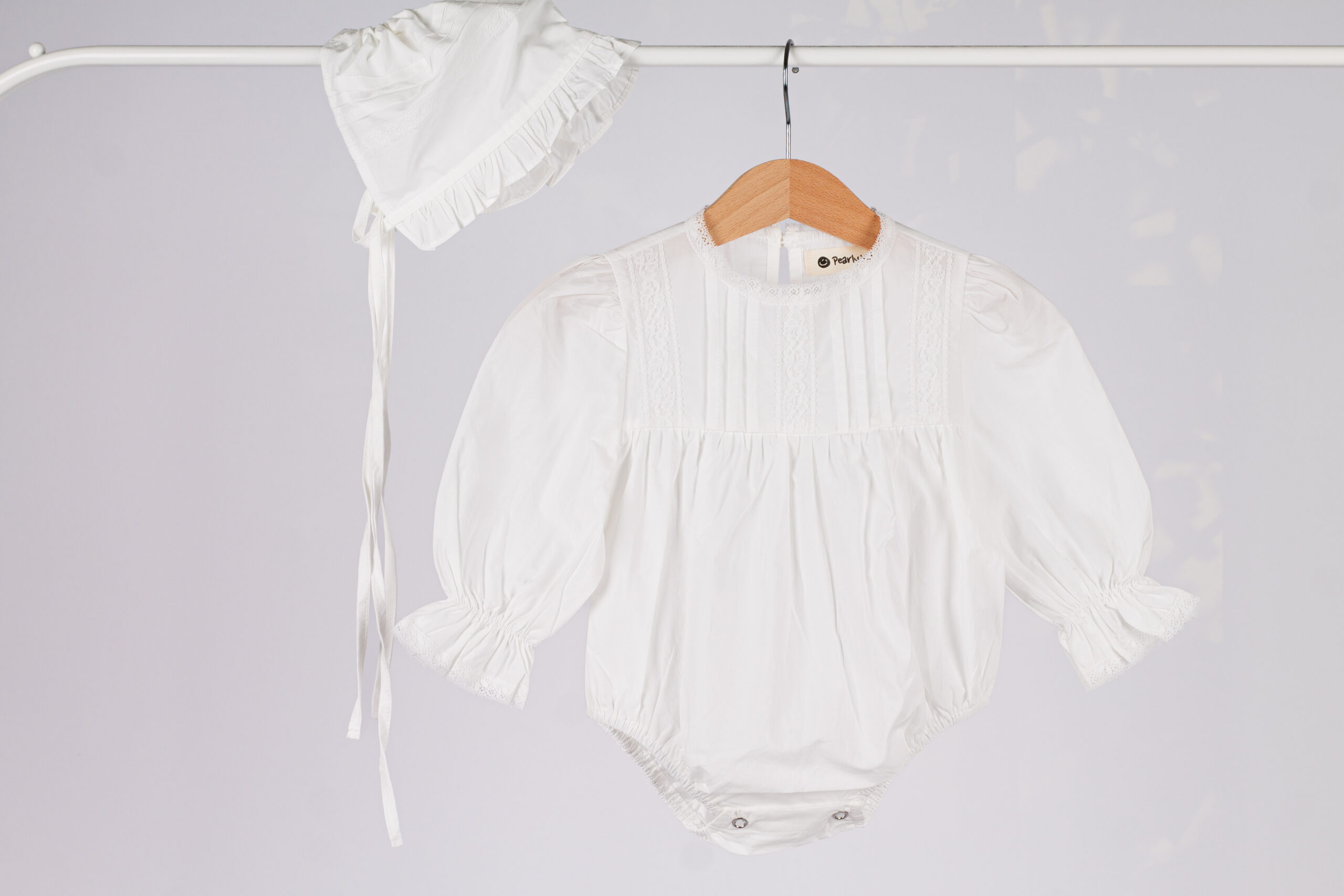 WD3987 فستان وقطعة بيبي كلاسيكية باللون الأبيض – Classic White Set