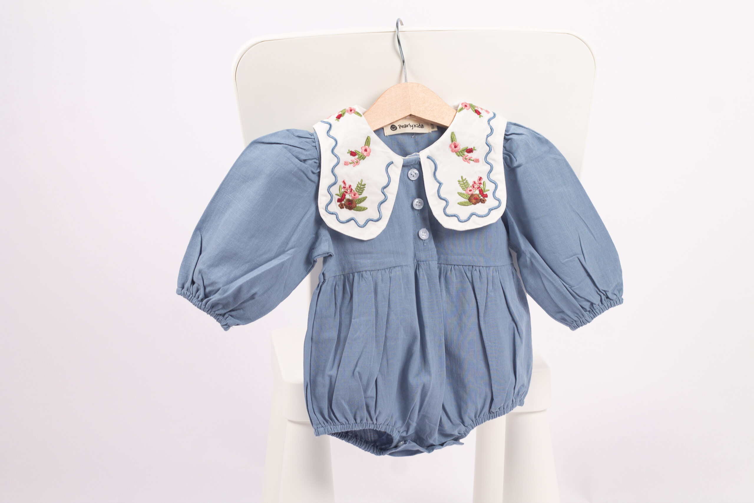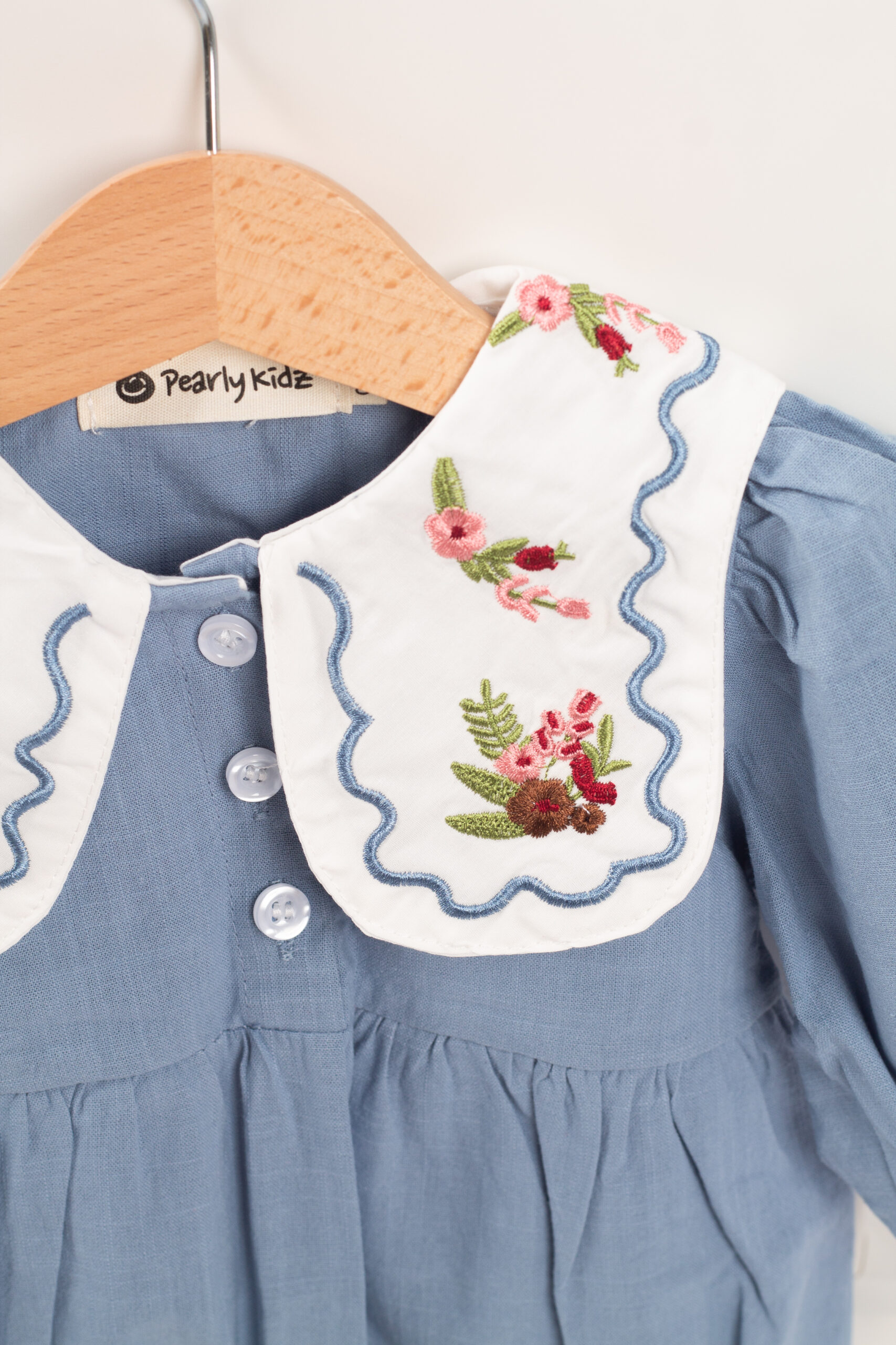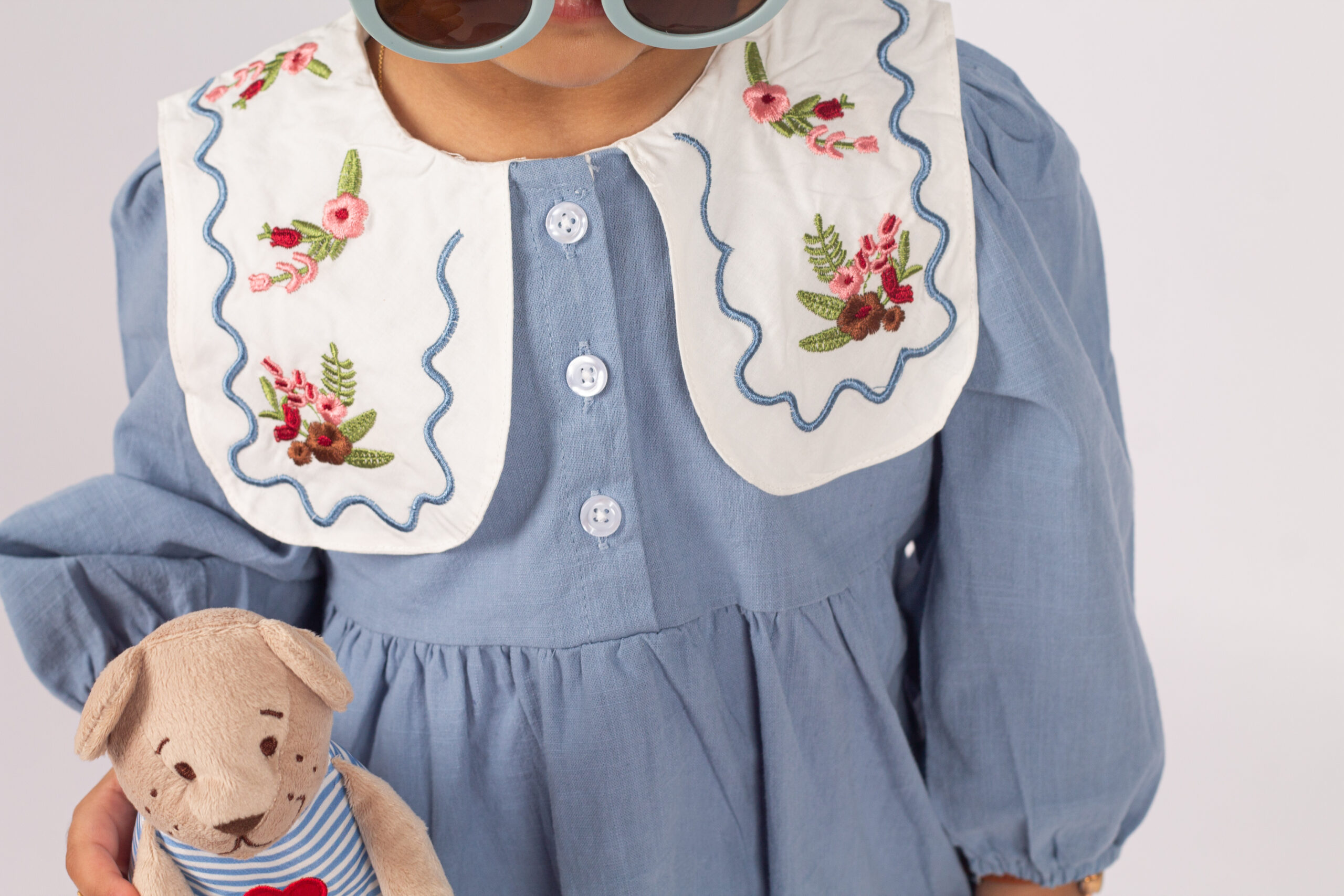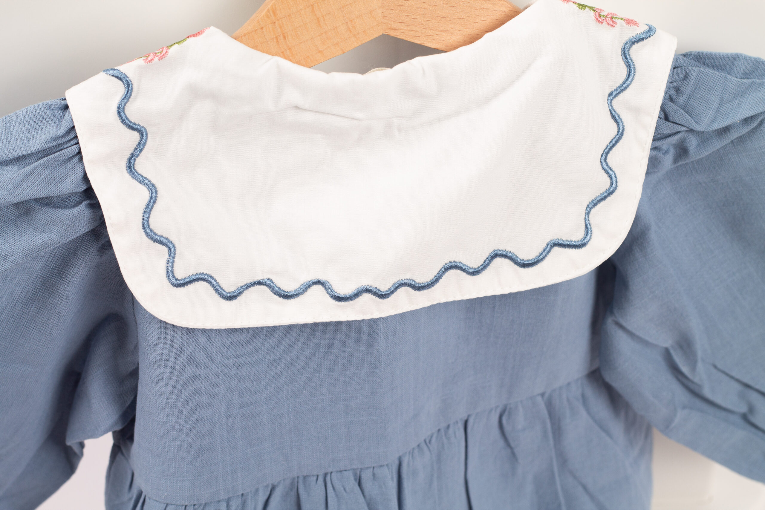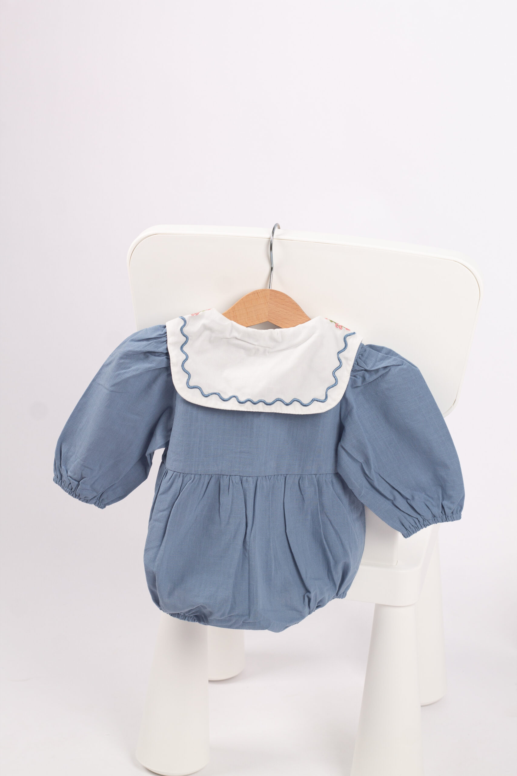 جمبسوت أنيق بلمسة كلاسيكية ناعمة، يتميّز بياقة واسعة مزخرفة بتطريزات وردية تمنح القطعة طابعًا لطيفًا وجذابًا. القماش خفيف ومريح، والأكمام المنفوخة تعطيه شكلًا طفوليًا جميلًا. مناسب للإطلالات اليومية والمناسبات، ويمنح طفلتك مظهرًا مرتّبًا بلمسة فintage محبّبة.