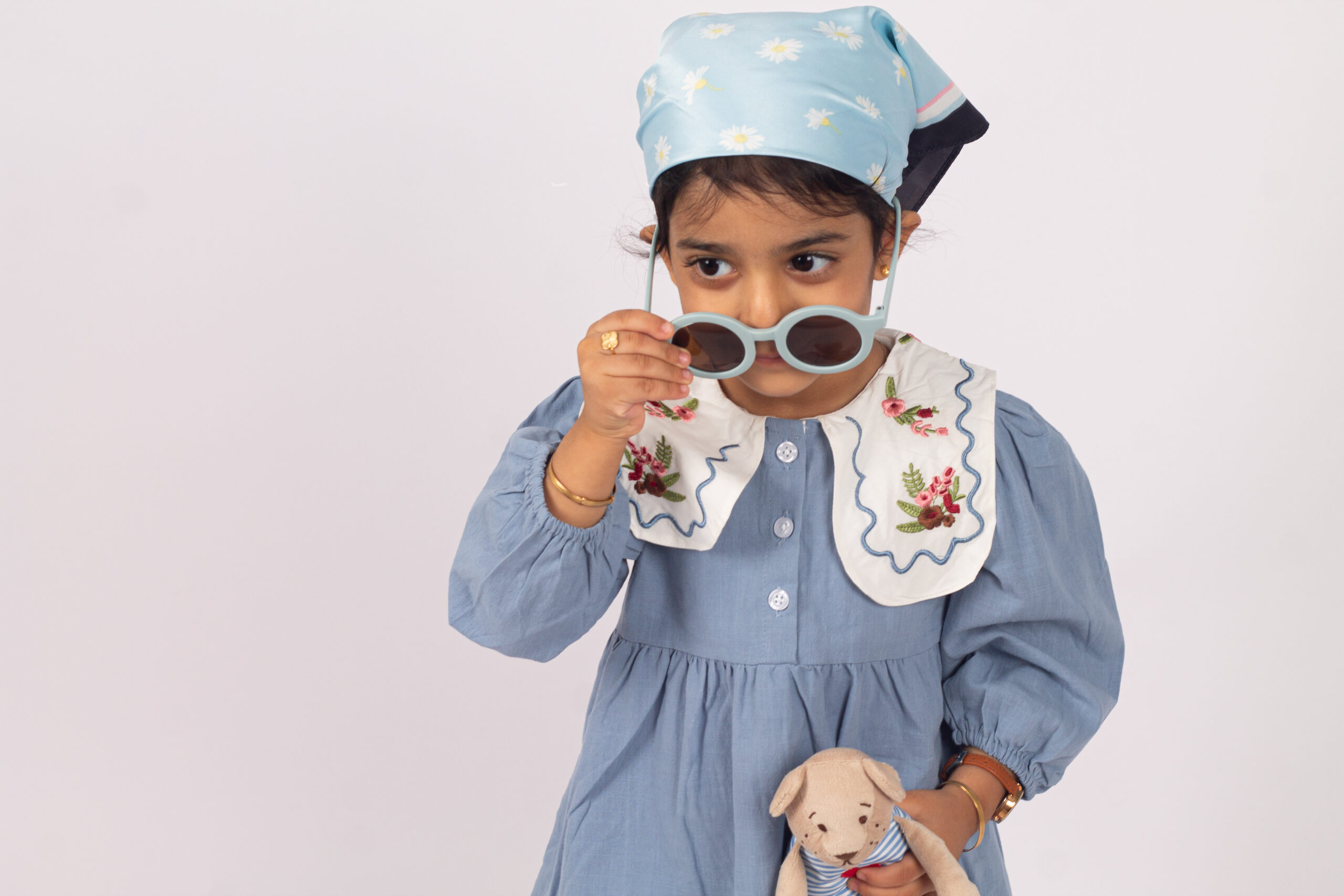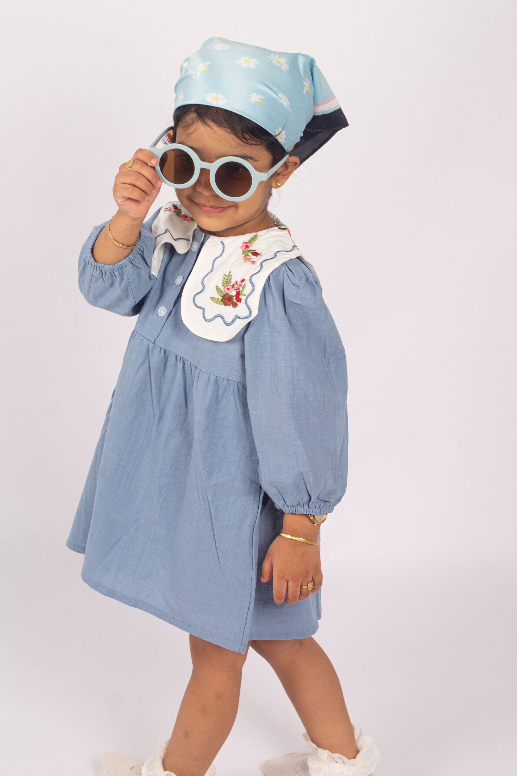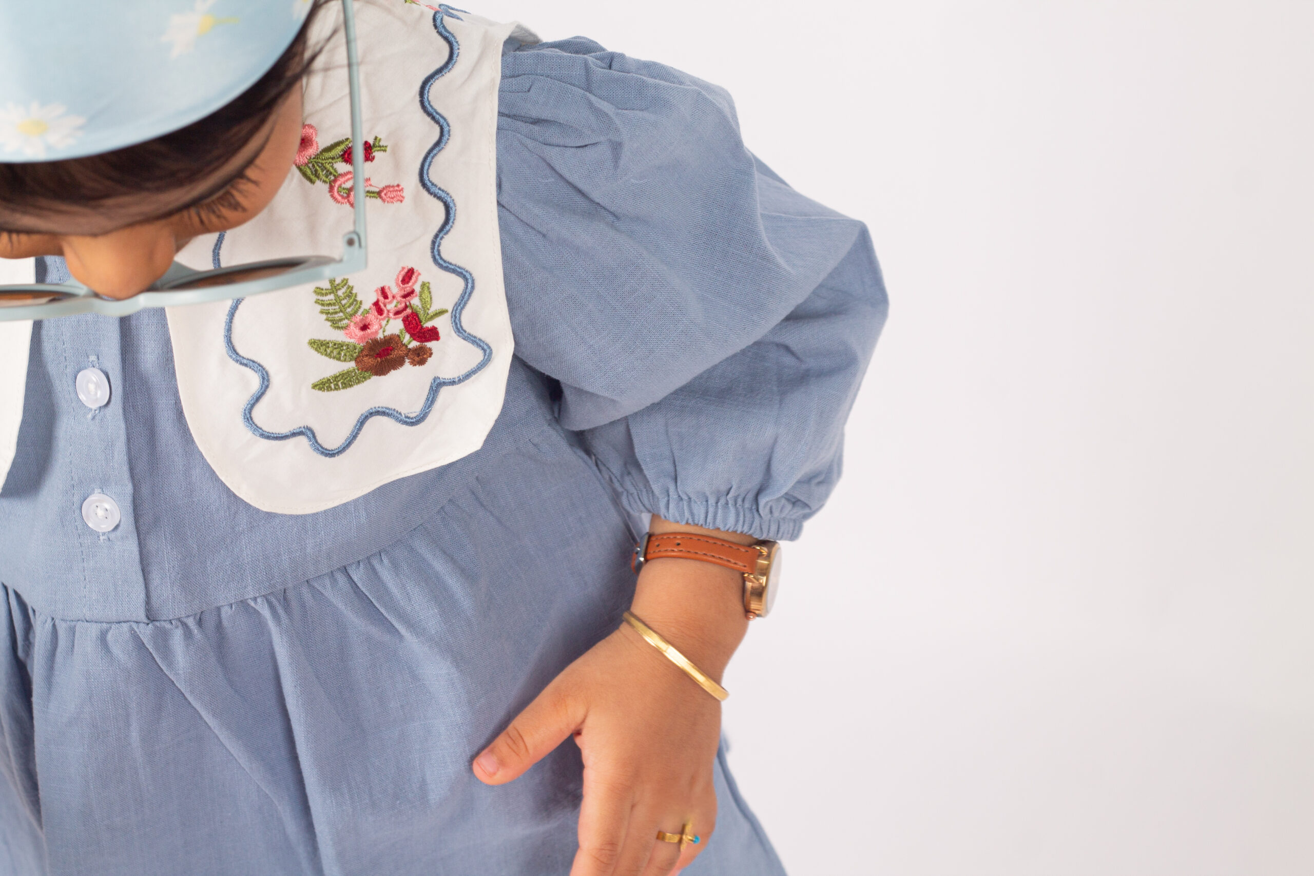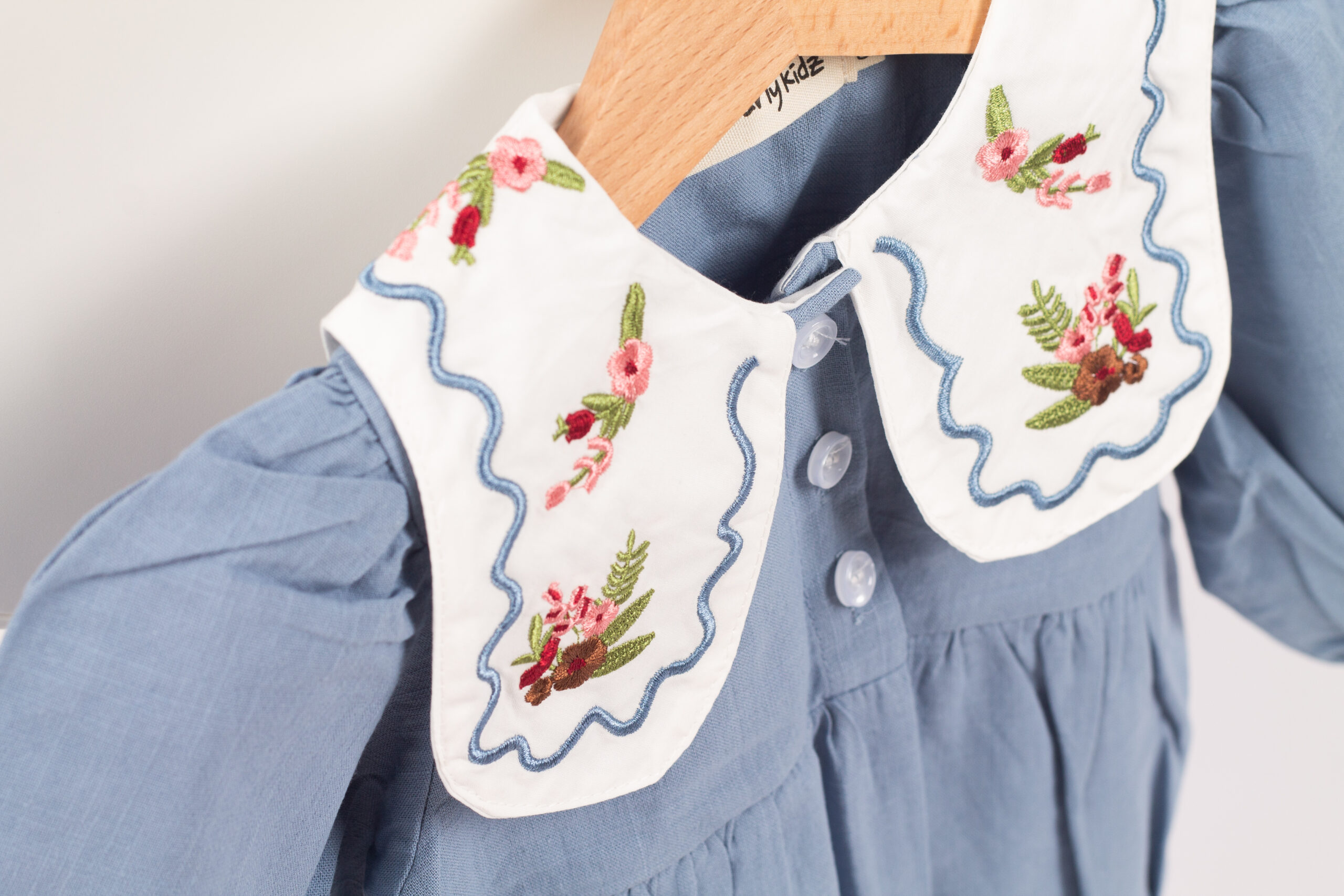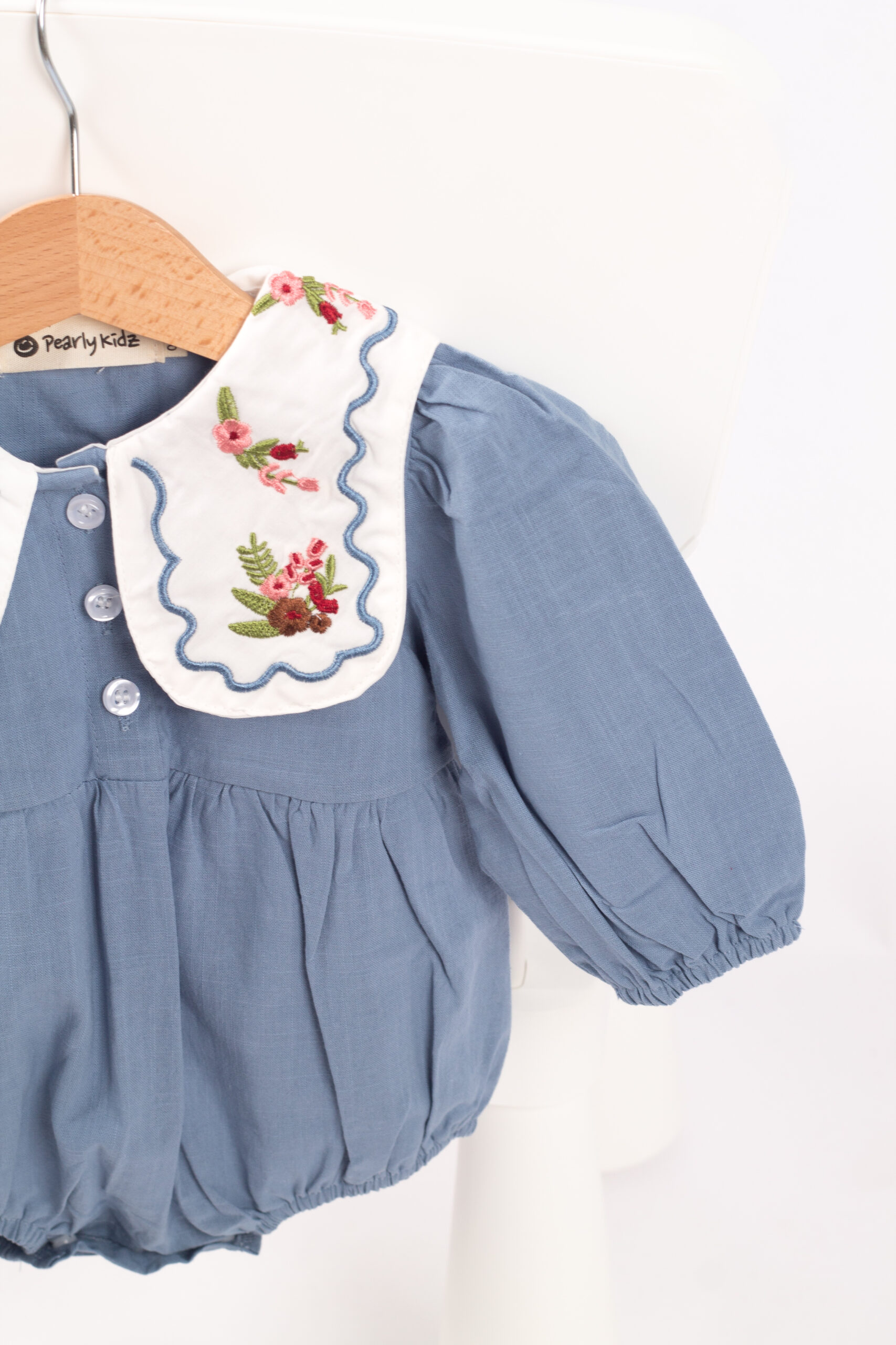 جمبسوت أنيق بلمسة كلاسيكية ناعمة، يتميّز بياقة واسعة مزخرفة بتطريزات وردية تمنح القطعة طابعًا لطيفًا وجذابًا. القماش خفيف ومريح، والأكمام المنفوخة تعطيه شكلًا طفوليًا جميلًا. مناسب للإطلالات اليومية والمناسبات، ويمنح طفلتك مظهرًا مرتّبًا بلمسة فintage محبّبة.