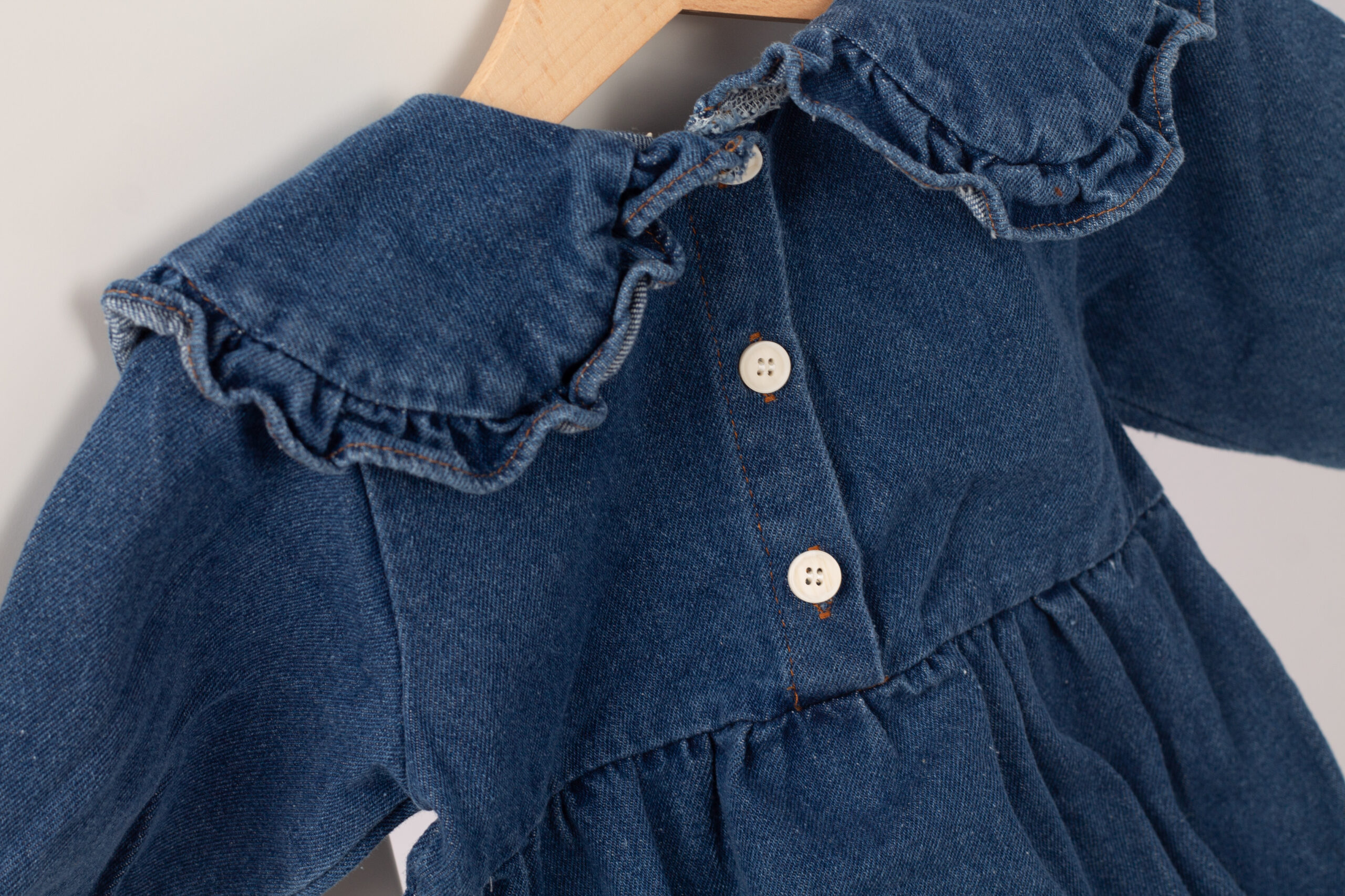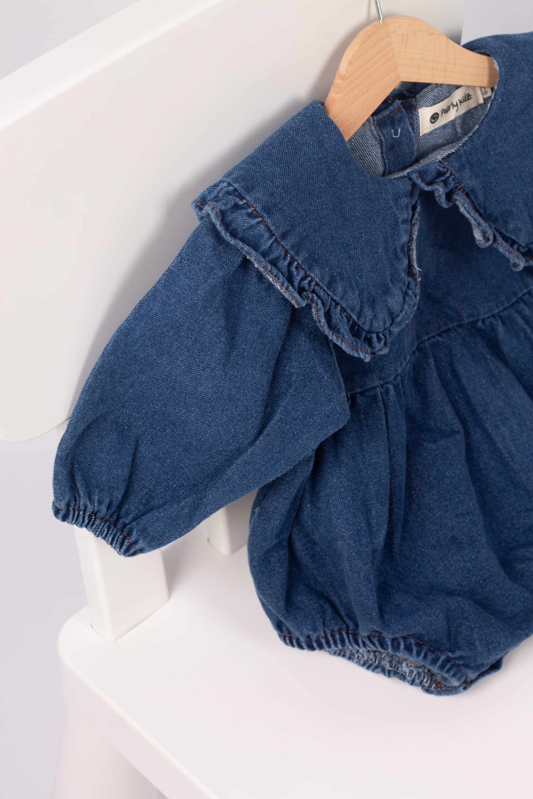 رومبر جينز عملي وأنيق بتصميم خفيف يناسب اللبس اليومي، يتميز بياقة كبيرة بكشكش تضيف لمسة لطيفة وجميلة. القماش مريح وسهل الحركة، واللمسات المطاطية عند الأطراف تعطي ثبات وشكل مرتب. قطعة مثالية لإطلالة عملية ومرتبة في نفس الوقت.