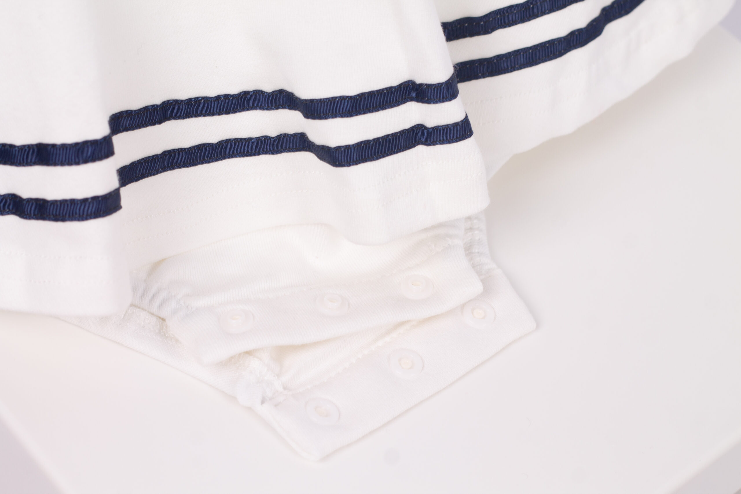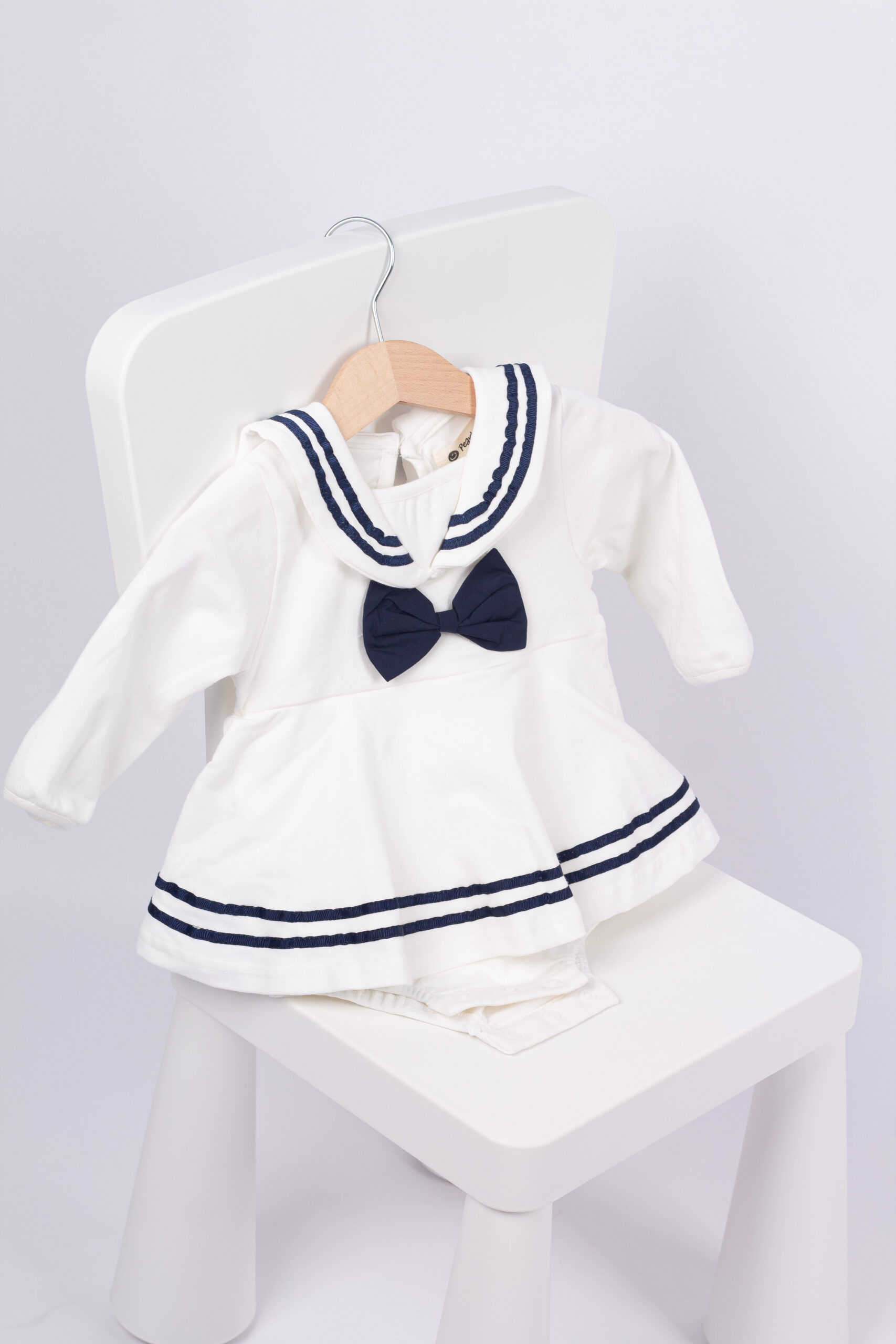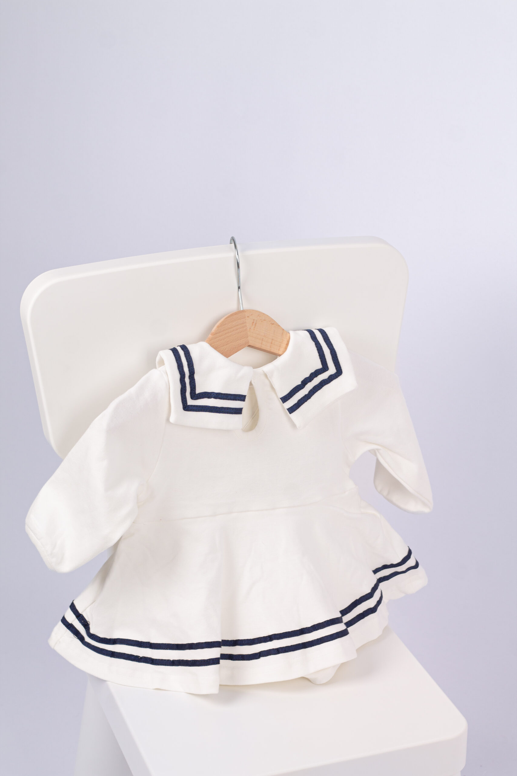 طقم سيلور أنيق بتفاصيل بحرية ناعمة ولمسة كلاسيكية راقية. يأتي بياقة السيلور المميزة المزينة بخطوط كحليّة، مع فيونكة أمامية تضيف لمسة لطافة ملفتة. القماش مريح وناعم على البشرة، والتصميم يعطي إطلالة مرتّبة وجميلة تناسب الخروج والتصوير والمناسبات. قطعة تجمع بين البساطة والفخامة في آن واحد.