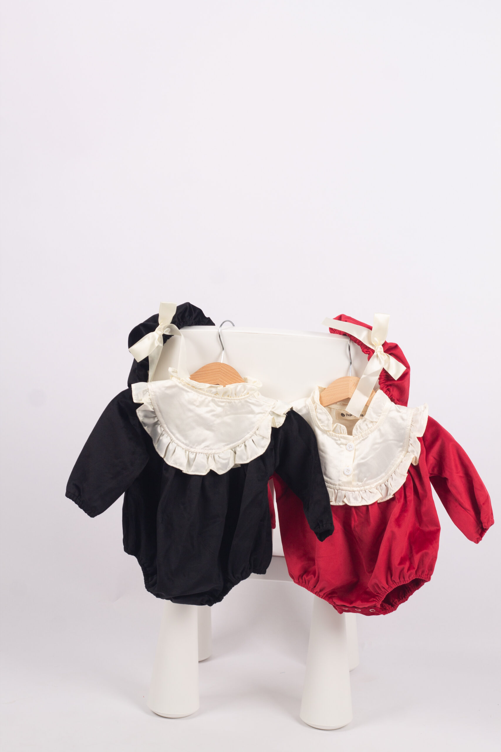 رومبر بناتي بتصميم كلاسيكي مميز بياقة كريمية كبيرة مع كشكشة ناعمة تضيف أناقة فورية. متوفر بلونين (أسود – أحمر)، وأكمام طويلة مع إستيك خفيف عند الأطراف. خامة مريحة وخفيفة، مثالية للبس المرتب والمناسبات البسيطة. مزود بكبسات سفلية لتسهيل اللبس والتغيير.